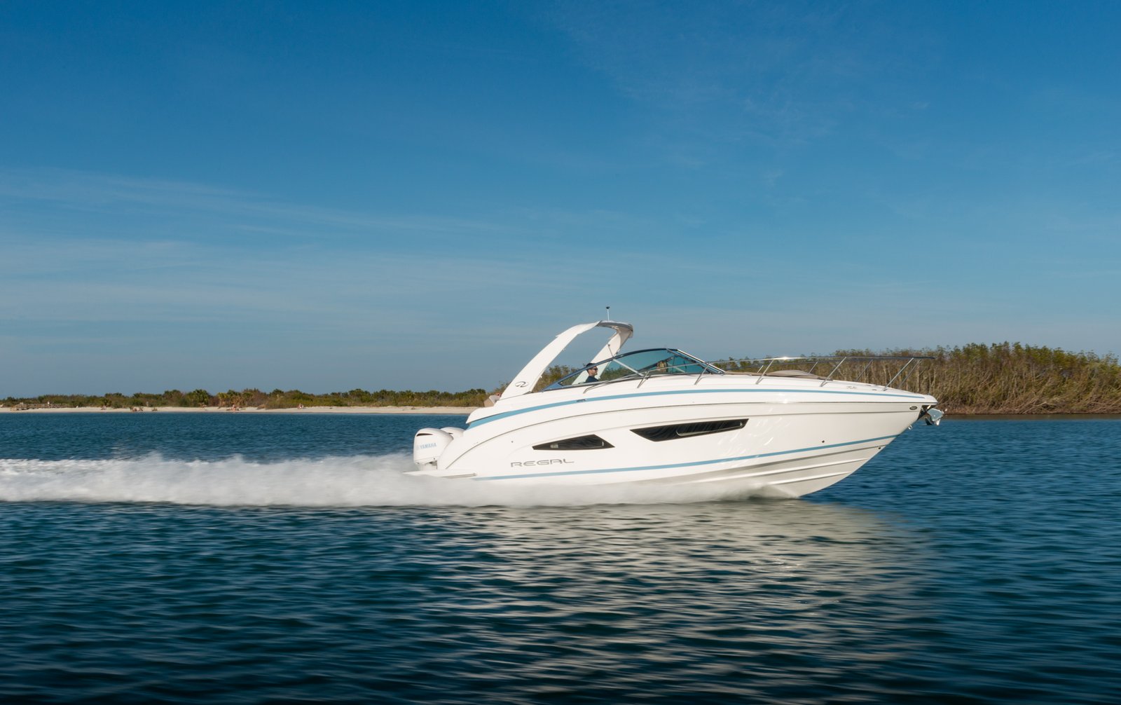The Regal 33 XO is a remarkable blend of luxury, performance, and versatility, making it an ideal choice for both seasoned boaters and newcomers. With a hull length of approximately 10 meters, this model provides ample space for entertaining, relaxation, or adventure on the water. The cockpit is intelligently designed with ergonomic seating, offering comfort and style for up to eight day guests. Below deck, the Regal 33 XO features two well-appointed cabins, providing sleeping accommodations for up to four guests, making overnight trips a delightful possibility. Powered by robust outboard engines, the Regal 33 XO ensures a smooth and exhilarating ride, reaching cruising speeds comfortably and achieving impressive maximum speeds. The thoughtfully designed helm station is equipped with state-of-the-art navigation and control systems, ensuring a straightforward and enjoyable boating experience. Constructed with high-quality GRP, the hull offers a sleek and modern appearance while ensuring durability and performance. The interior of the Regal 33 XO is crafted with precision and attention to detail, using premium materials to create a sophisticated and inviting atmosphere. Whether you’re cruising the coastline or anchored in a serene bay, this model offers the perfect blend of luxury and practicality. Regal’s in-house design and engineering teams have meticulously crafted every aspect of the 33 XO, ensuring it stands out in the competitive market of luxury boats. Available with a range of customization options, the Regal 33 XO allows owners to tailor the boat to their personal preferences, making it a truly bespoke experience.