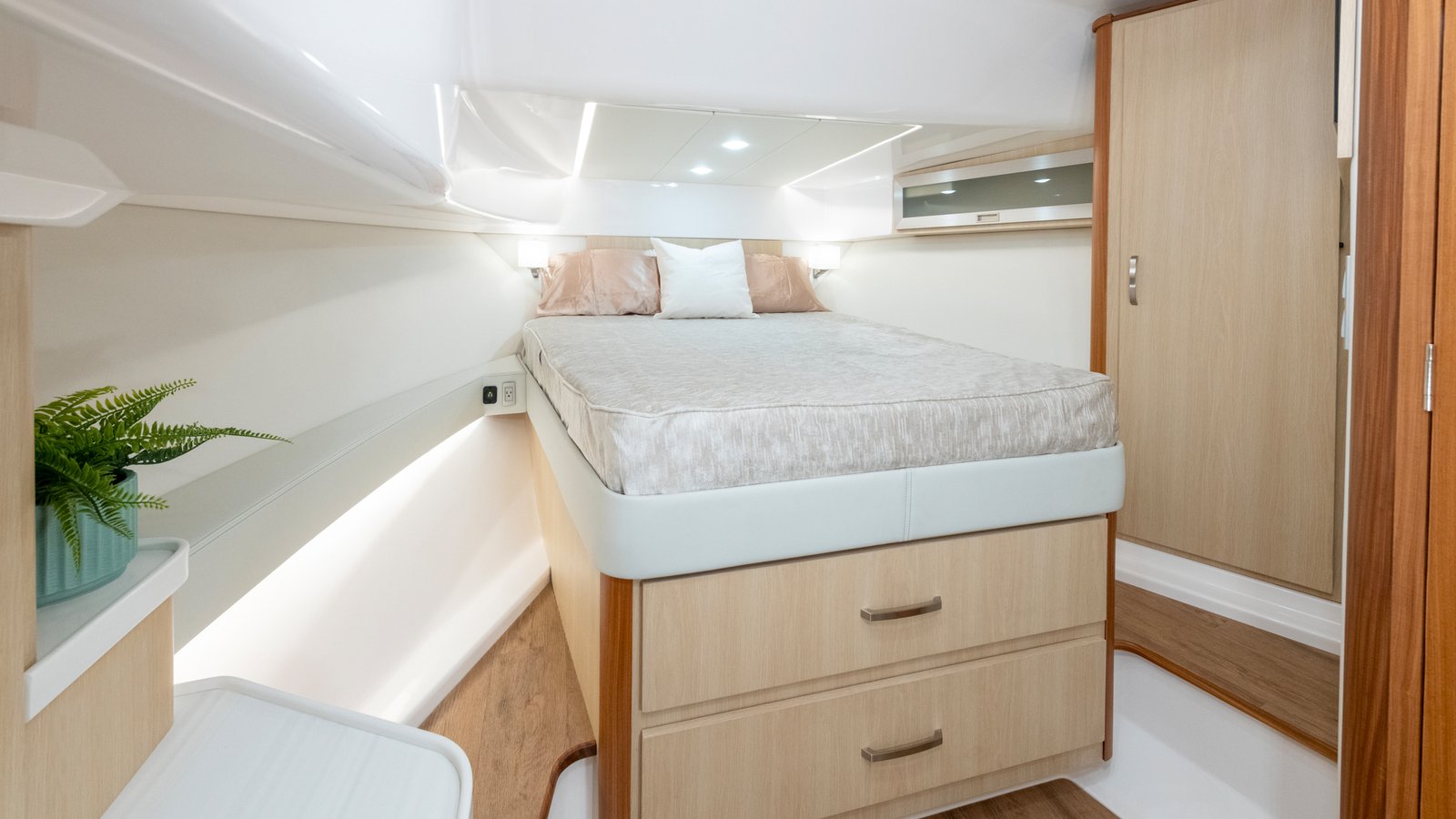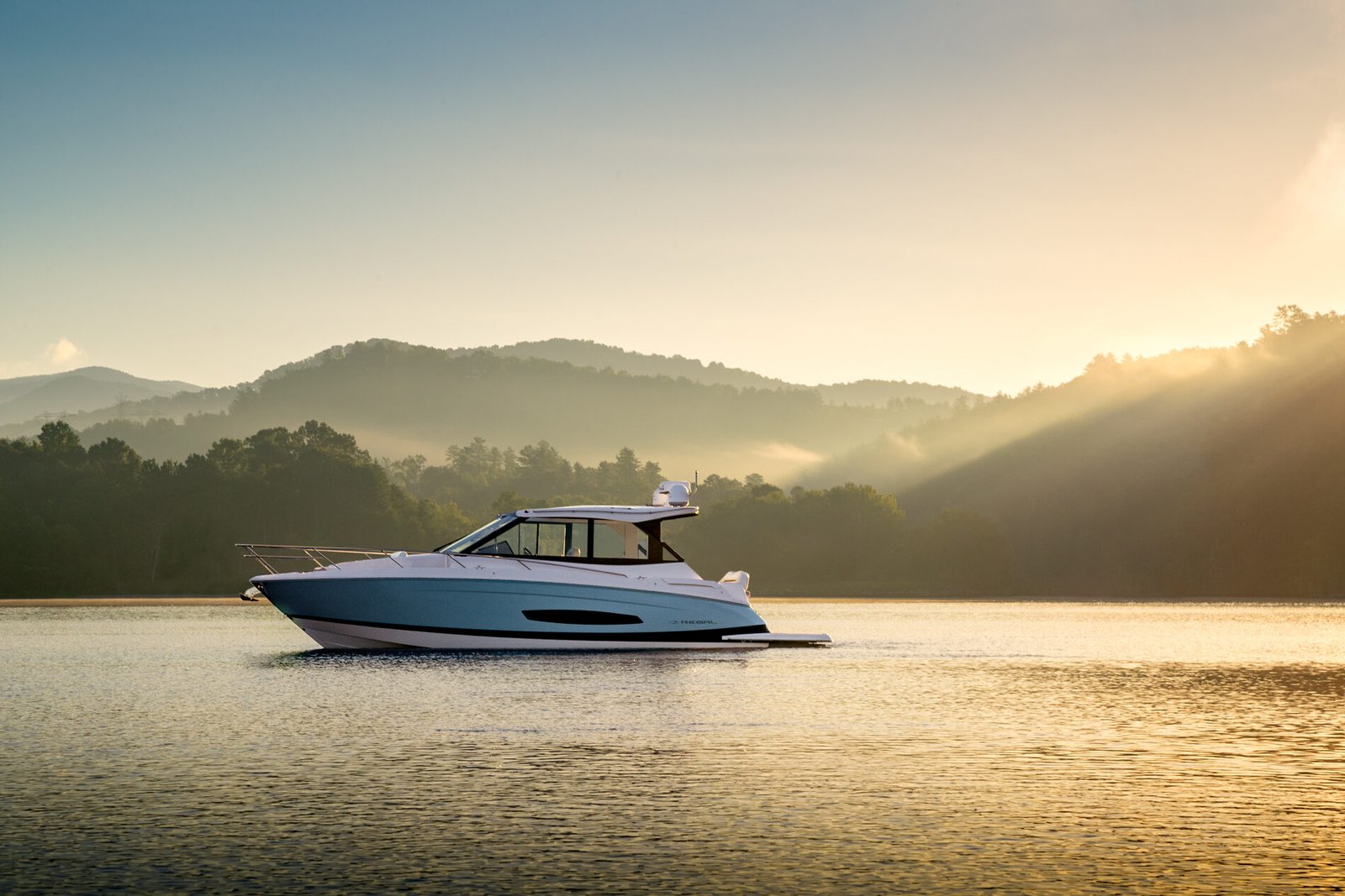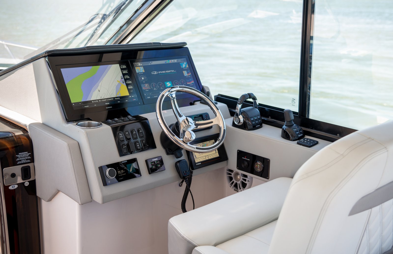 The Regal 36 Grande Coupe is a remarkable blend of luxury and performance, designed to elevate your boating experience to new heights. This sophisticated model boasts a sleek and modern exterior, characterized by its expansive windows and streamlined silhouette, which not only enhances its aesthetic appeal but also provides panoramic views from within. Measuring approximately 11.73 meters (38 feet 6 inches) in length and with a beam of 3.56 meters (11 feet 8 inches), the 36 Grande Coupe offers ample space for relaxation and entertainment. The interior is meticulously crafted, featuring premium materials and finishes that exude a sense of elegance and comfort. Designed to accommodate up to 8 day guests, with sleeping arrangements for 4 in two spacious cabins, this vessel ensures a luxurious stay on the water. Equipped with twin Volvo Penta V8 350 engines, the 36 Grande Coupe delivers impressive performance, achieving a maximum speed of 35 knots and a comfortable cruising speed of 25 knots. With a fuel capacity of 757 liters, it offers a substantial cruising range for extended adventures. The yacht’s planning hull configuration and GRP construction provide a smooth and stable ride, making it ideal for both coastal cruising and offshore excursions. The Regal design team, renowned for their innovative approach, has masterfully crafted both the exterior and interior, ensuring every detail enhances the onboard experience. Available at a starting price of approximately 450,000 EUR, the Regal 36 Grande Coupe is an investment in luxury and leisure that promises to deliver unforgettable maritime memories.