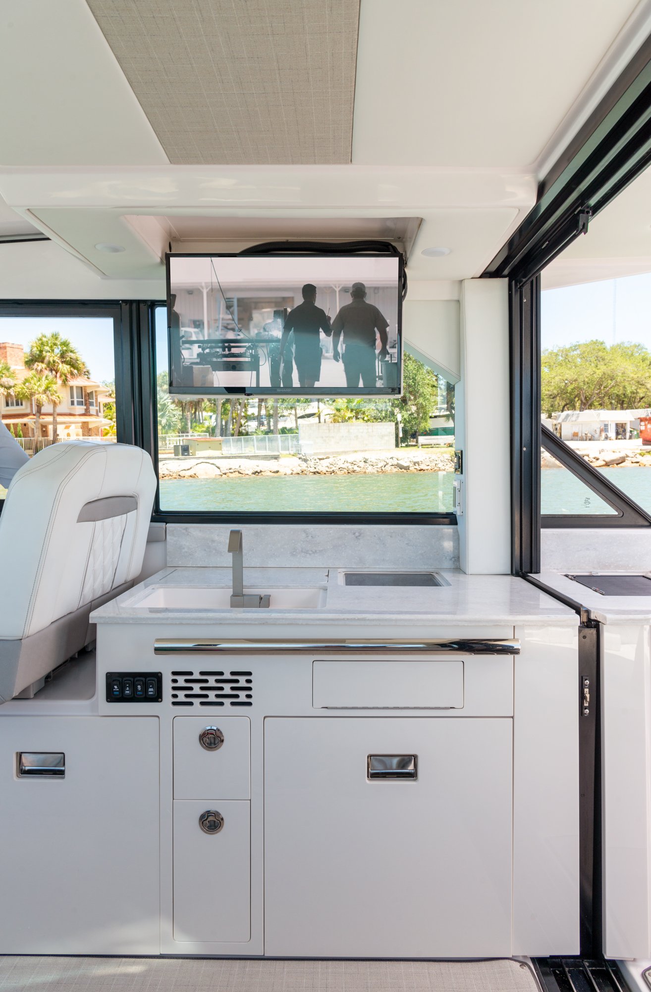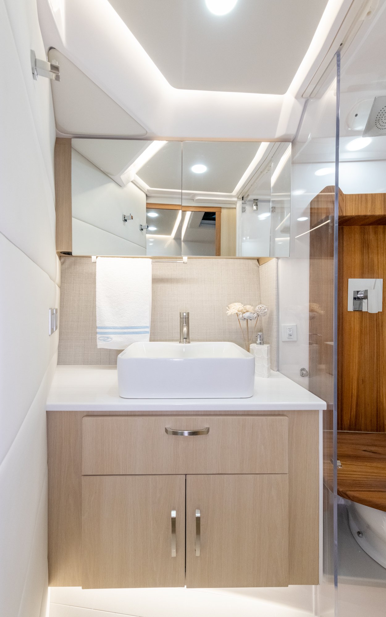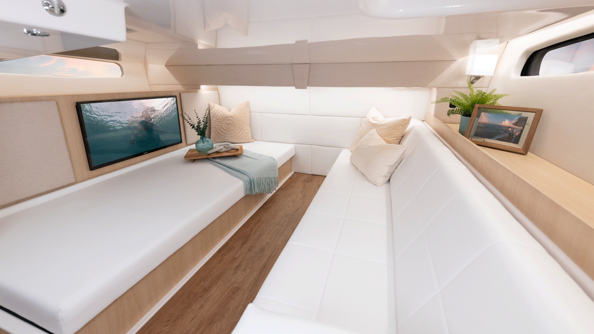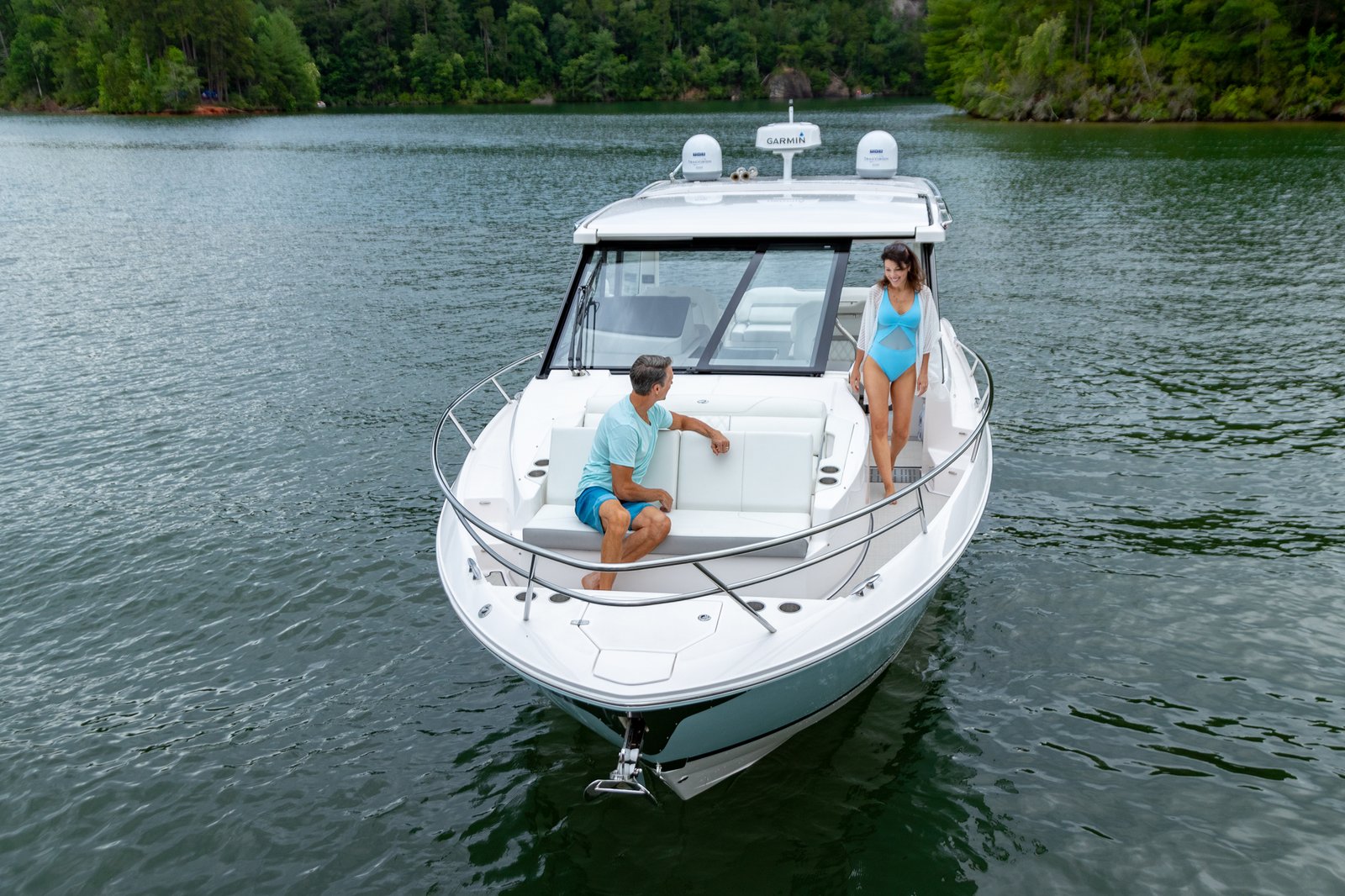 The Regal 36 Grande Coupe is a remarkable blend of luxury and performance, designed to elevate your boating experience to new heights. This sophisticated model boasts a sleek and modern exterior, characterized by its expansive windows and streamlined silhouette, which not only enhances its aesthetic appeal but also provides panoramic views from within. Measuring approximately 11.73 meters (38 feet 6 inches) in length and with a beam of 3.56 meters (11 feet 8 inches), the 36 Grande Coupe offers ample space for relaxation and entertainment. The interior is meticulously crafted, featuring premium materials and finishes that exude a sense of elegance and comfort. Designed to accommodate up to 8 day guests, with sleeping arrangements for 4 in two spacious cabins, this vessel ensures a luxurious stay on the water. Equipped with twin Volvo Penta V8 350 engines, the 36 Grande Coupe delivers impressive performance, achieving a maximum speed of 35 knots and a comfortable cruising speed of 25 knots. With a fuel capacity of 757 liters, it offers a substantial cruising range for extended adventures. The yacht’s planning hull configuration and GRP construction provide a smooth and stable ride, making it ideal for both coastal cruising and offshore excursions. The Regal design team, renowned for their innovative approach, has masterfully crafted both the exterior and interior, ensuring every detail enhances the onboard experience. Available at a starting price of approximately 450,000 EUR, the Regal 36 Grande Coupe is an investment in luxury and leisure that promises to deliver unforgettable maritime memories.