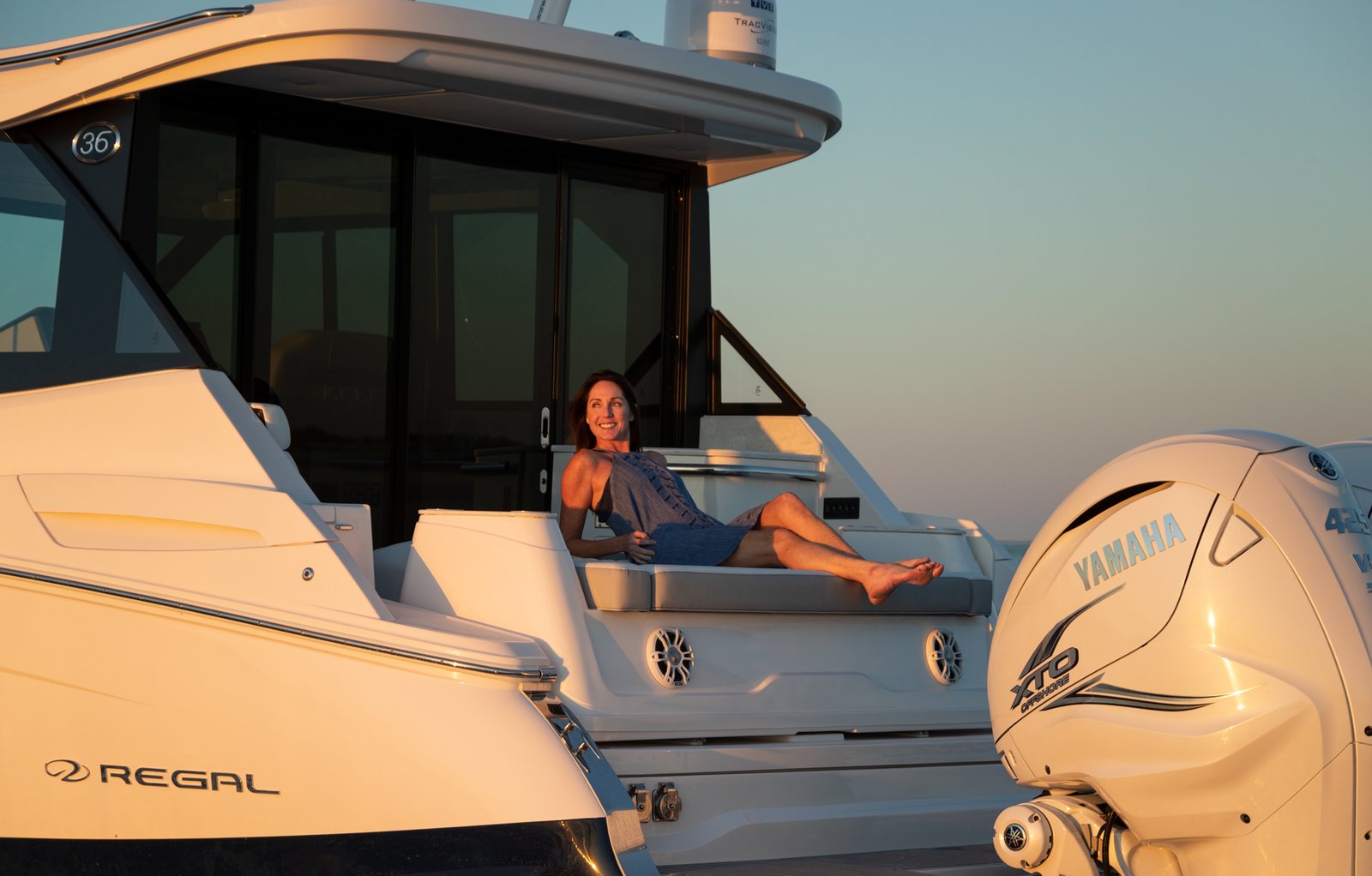 The Regal 36 XO seamlessly blends luxury, comfort, and versatility, making it a standout in its class. Designed with a focus on both day cruising and extended stays, the 36 XO offers ample space and amenities for up to eight guests. The open cockpit layout is perfect for socializing, featuring a spacious seating area, dinette, and a well-equipped wet bar, ensuring that entertaining is made easy. Below deck, the yacht boasts two private cabins that promise restful retreats. The master cabin features a queen-sized bed and plenty of storage, while the second cabin offers convertible twin beds, catering to various guest arrangements. The interior is fitted with high-quality materials and finishes, reflecting Regal’s commitment to luxury and style. Powered by dual Yamaha outboard engines, the 36 XO delivers robust performance, with impressive cruising speeds and fuel efficiency. The navigation station is equipped with state-of-the-art electronics, offering ease of control and safety for any captain. The yacht’s hull is constructed from durable GRP, providing a smooth and stable ride. Whether it’s a relaxing day on the water or a journey to an exotic destination, the Regal 36 XO is designed to deliver exceptional experiences on every voyage.