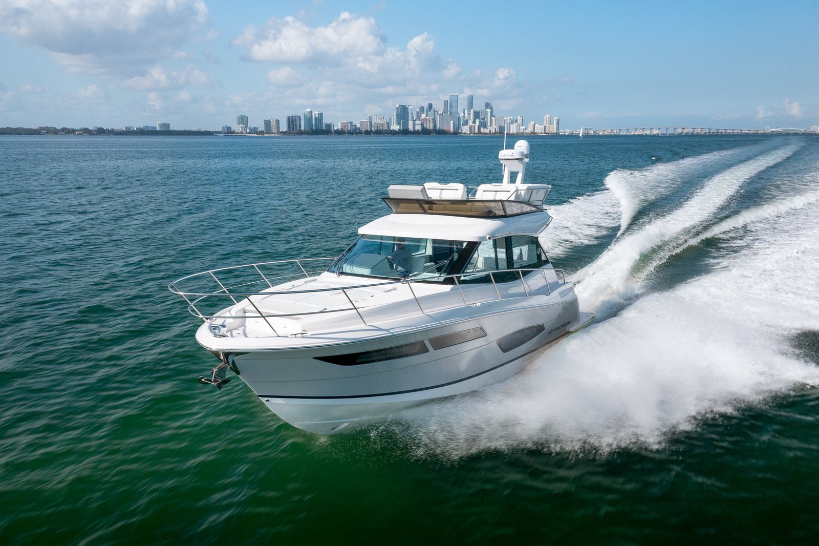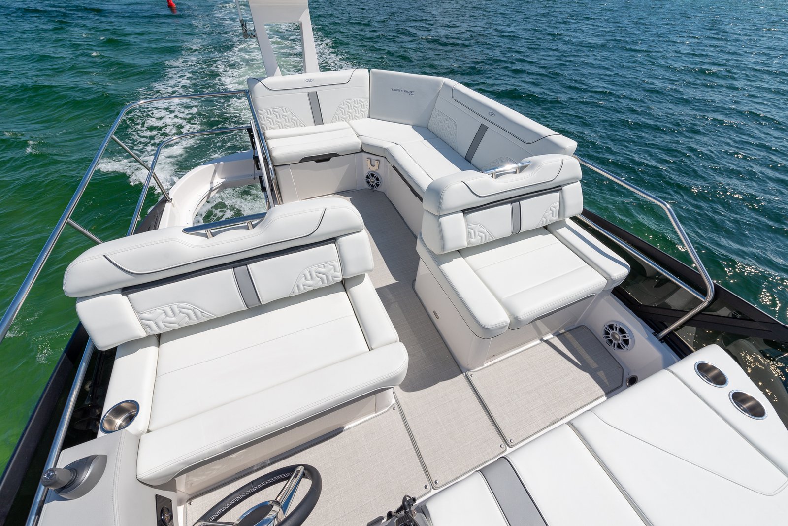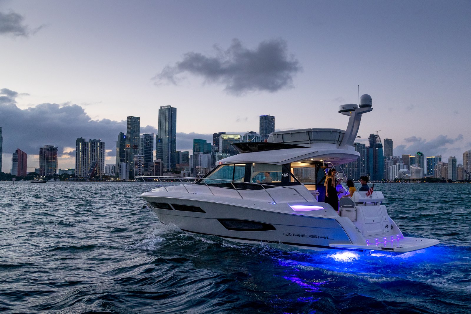 The Regal 38 FLY embodies the perfect blend of luxury and practicality, designed to provide an unparalleled on-water experience. This exquisite yacht features a spacious flybridge, perfect for social gatherings or simply enjoying panoramic views of the sea. The interior is crafted with meticulous attention to detail, boasting high-quality finishes and a thoughtfully designed layout that maximizes space and comfort. With two well-appointed cabins, the 38 FLY comfortably accommodates up to six guests overnight, making it ideal for weekend getaways or extended cruising adventures. Powered by robust inboard engines, this yacht delivers impressive performance, ensuring smooth cruising even in challenging conditions. The advanced hull design not only enhances stability but also contributes to its efficient fuel consumption, enabling longer voyages without frequent refueling stops. On the main deck, the open-plan saloon features large windows that flood the interior with natural light, creating an inviting and airy atmosphere. The galley is equipped with modern appliances, allowing for effortless meal preparation while enjoying breathtaking views. For those who value outdoor living, the expansive cockpit and foredeck sunpads offer ample space for relaxation and entertainment. With its elegant lines and state-of-the-art technology, the Regal 38 FLY stands out in any marina, promising an unforgettable experience for you and your guests. Whether cruising along the coast or anchoring in a secluded bay, this yacht provides the perfect balance of style, comfort, and performance, making it a superb choice for discerning yacht enthusiasts.