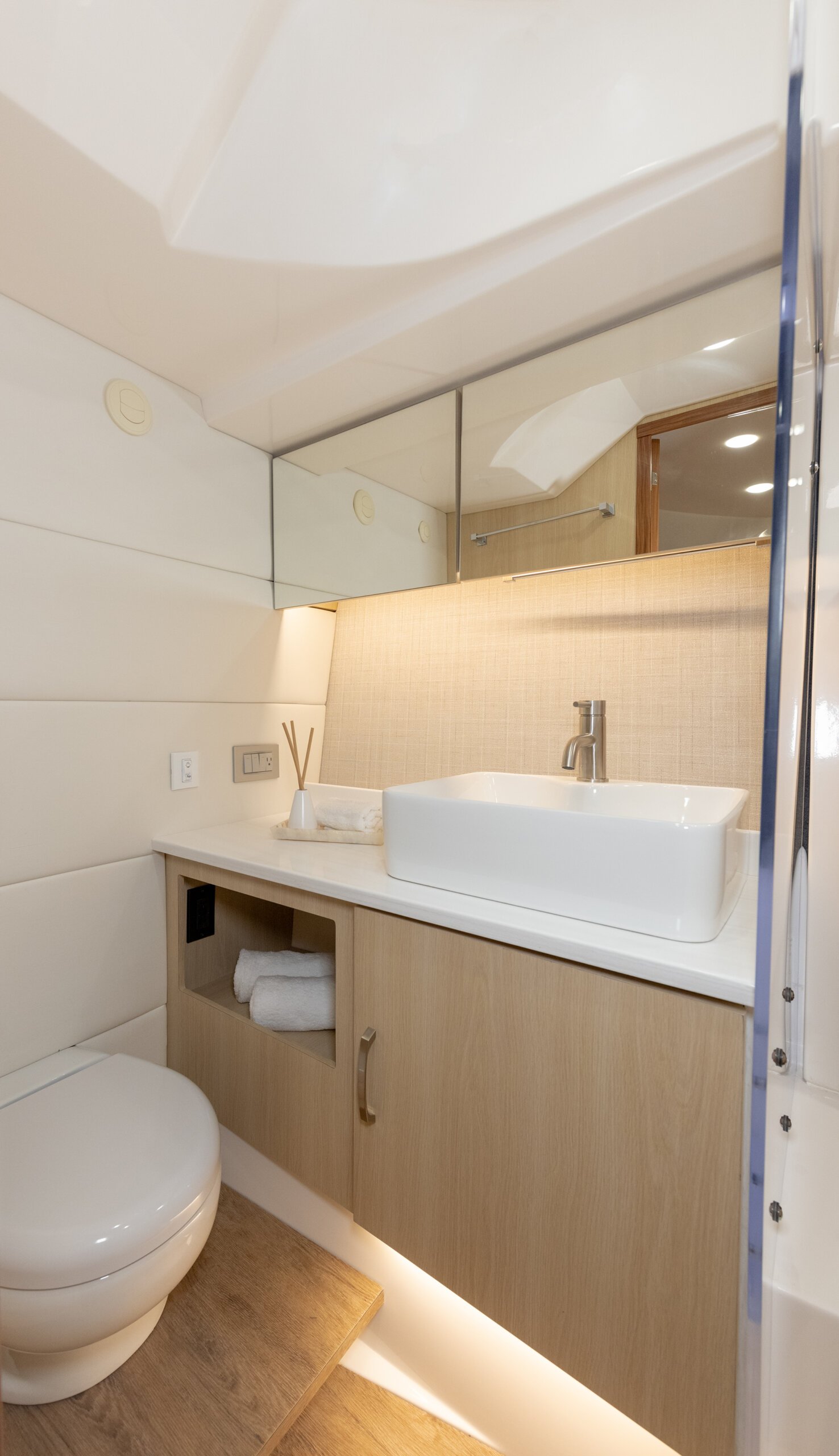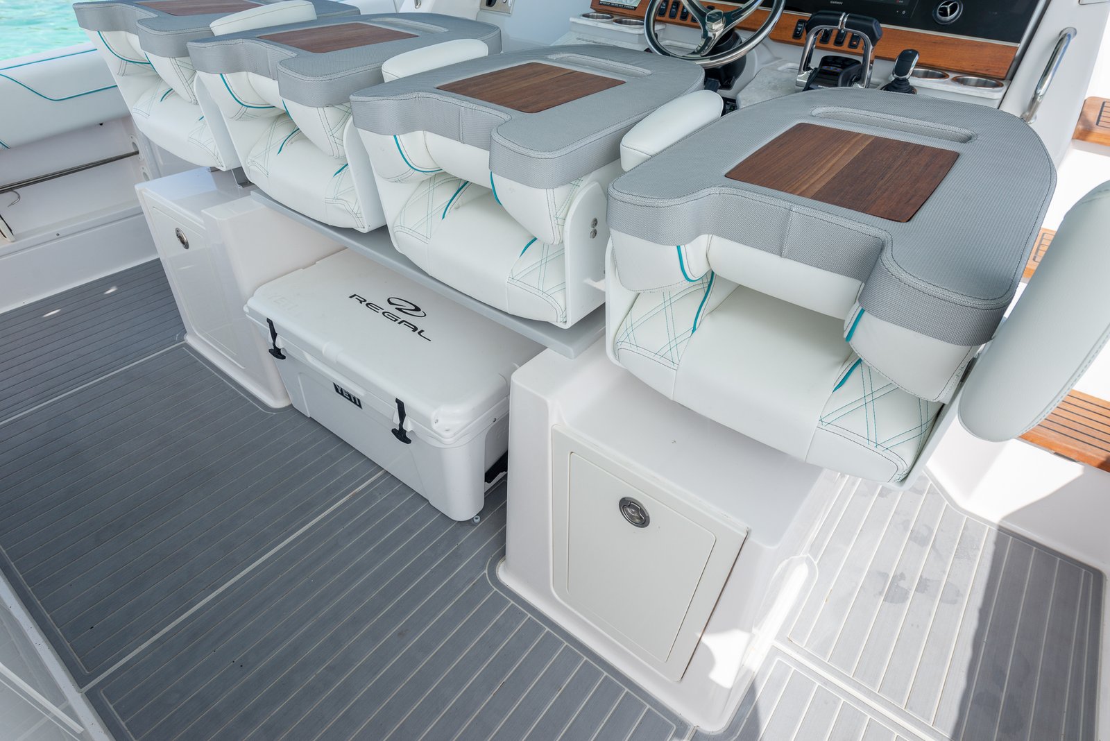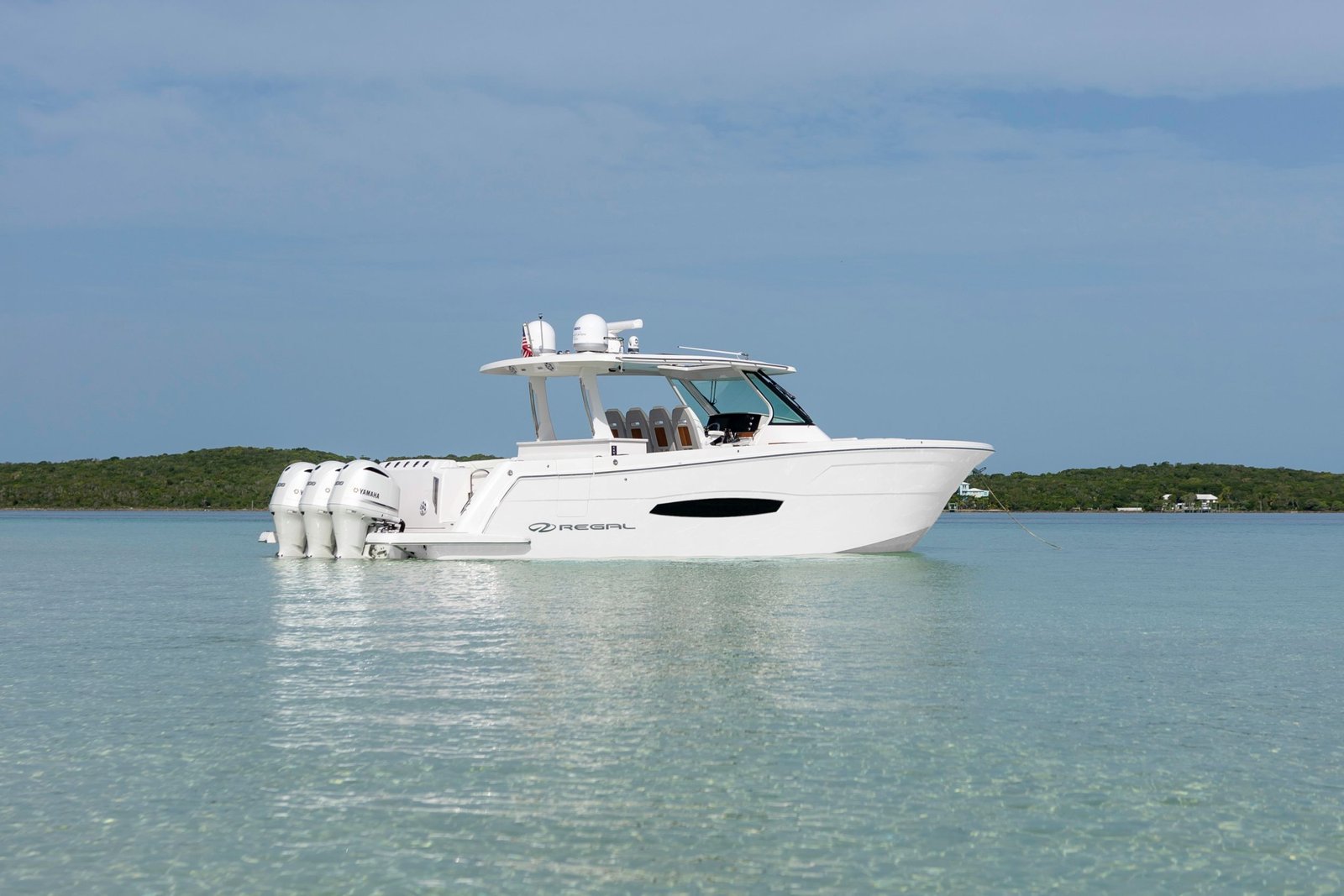 The Regal 38 SAV (Sports Activity Vessel) is a testament to modern engineering and design, offering a versatile boating experience that seamlessly blends luxury with functionality. Measuring approximately 11.6 meters in length, this vessel is crafted from high-quality GRP, ensuring both durability and a sleek, modern appearance. The monohull design is complemented by a planning hull configuration, which enhances performance and offers a smooth ride even in choppy waters. Powered by twin inboard engines, typically twin Yamaha F300 engines, the Regal 38 SAV can cruise comfortably at speeds around 30 knots, reaching maximum speeds of up to 45 knots. With a fuel capacity of approximately 1,136 liters, it offers an impressive range suitable for extended trips. The interior of the 38 SAV is as impressive as its performance. Designed by Regal’s in-house team, the cabin is spacious, accommodating up to 8 day guests and offering comfortable overnight accommodations for up to 4 guests in 2 cabins. The thoughtful layout provides a blend of open social spaces and private retreats, making it perfect for both entertaining and relaxation. Onboard amenities include a full-featured galley, a luxurious head, and ample storage, ensuring that all the comforts of home are at your fingertips. The Regal 38 SAV is not just a boat; it’s a lifestyle upgrade, offering everything from fishing expeditions to family outings with ease and style. Whether you are an avid adventurer or someone who enjoys the finer things in life, the Regal 38 SAV delivers an unmatched boating experience.
