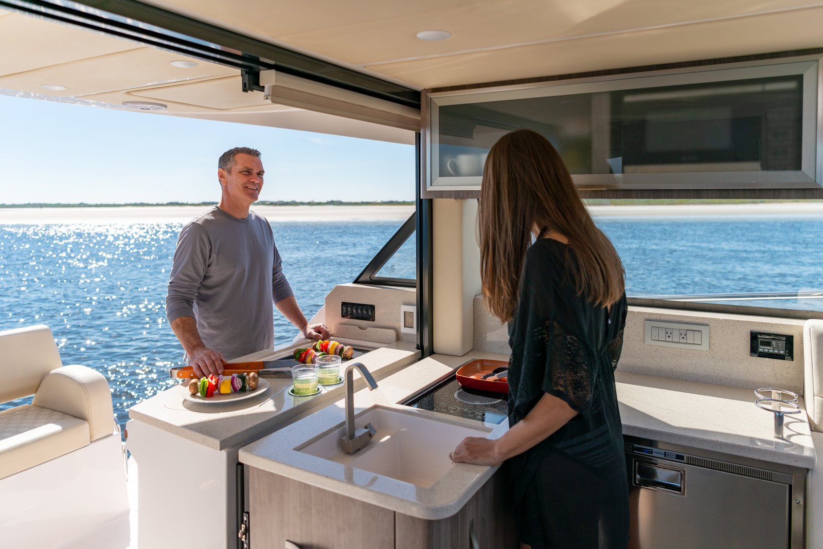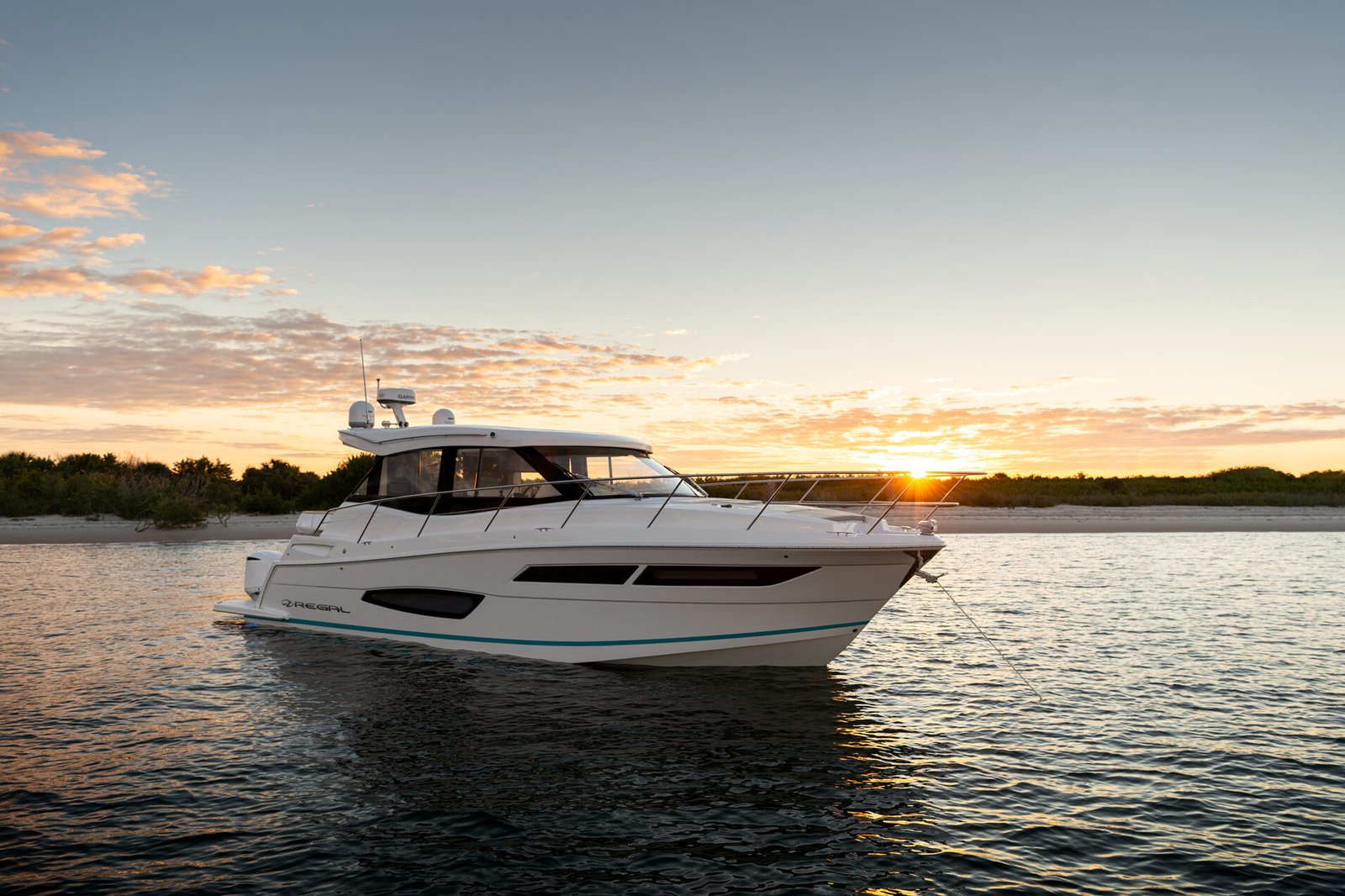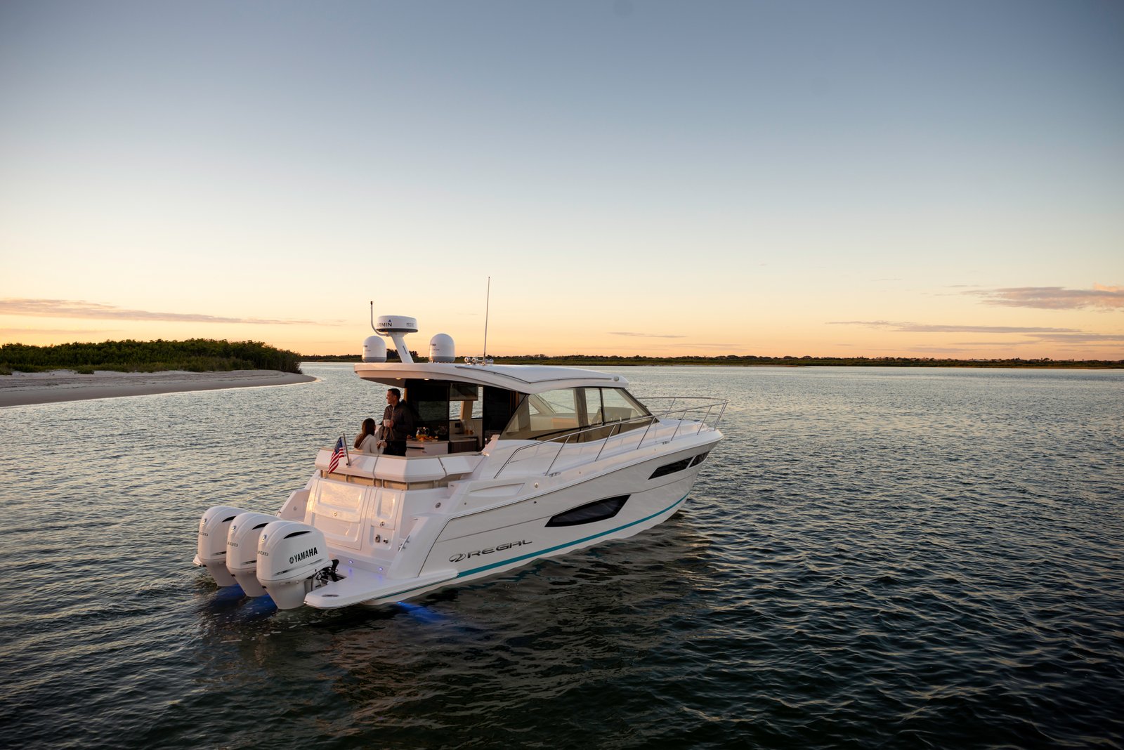 Equipped with twin Yamaha 300HP outboard engines as standard, the Regal 38 XO offers impressive performance, reaching cruising speeds of 26 knots and a maximum speed of up to 40 knots, allowing for exhilarating journeys on the water. The thoughtful engineering and design by Regal’s in-house team ensure optimal performance and handling in various sea conditions. The interior is elegantly designed with premium materials, offering both functionality and luxury with features such as a fully-equipped galley, a comfortable salon area, and a private head.