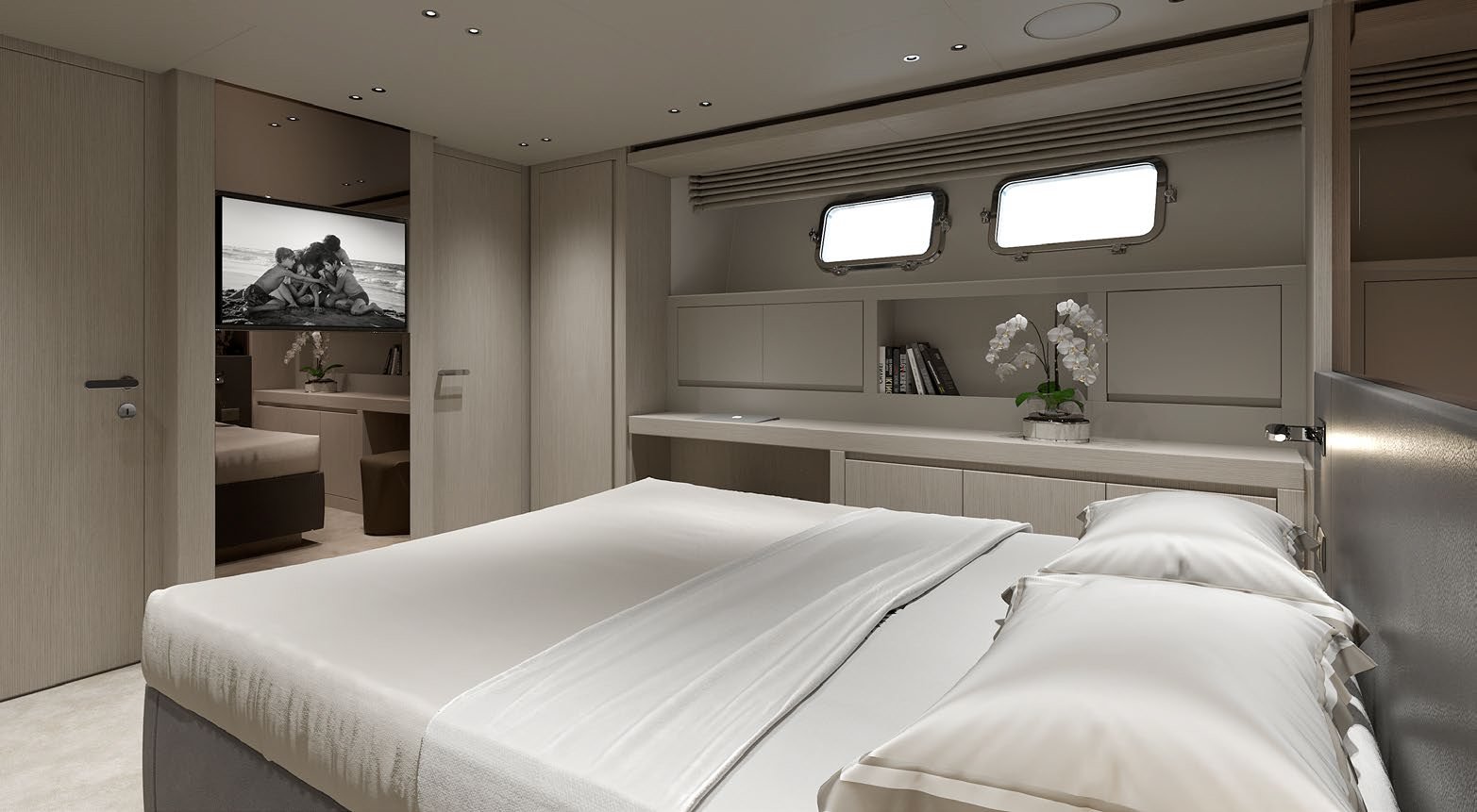 The Sanlorenzo SX100 is a masterpiece of Italian yacht design, seamlessly blending elegance, innovation, and functionality. This 30-meter beauty is part of Sanlorenzo’s acclaimed SX line, known for its bold and modern aesthetics. With a beam of 8 meters, the SX100 offers an expansive interior and exterior space, providing unparalleled comfort and luxury. The yacht features a strikingly sleek and modern exterior by renowned designer Zuccon International Project, while the sophisticated interior is curated by Piero Lissoni, known for his minimalist yet luxurious approach. The SX100 is powered by twin Volvo Penta IPS engines, ensuring an efficient and smooth performance with a cruising speed of 20 knots and a maximum speed of 23 knots. The yacht accommodates up to 8 guests in 4 lavish cabins, each meticulously designed to provide the utmost comfort. The open-plan layout seamlessly connects indoor and outdoor spaces, enhancing the overall experience of luxury cruising. With a focus on sustainability, the SX100 incorporates eco-friendly technologies and materials, reflecting Sanlorenzo’s commitment to environmental responsibility. The spacious flybridge and aft deck provide ample areas for relaxation and entertainment, making it ideal for both intimate gatherings and larger social events. Whether exploring coastal paradises or enjoying the serenity of the open sea, the Sanlorenzo SX100 delivers a yachting experience that is both exhilarating and serene.