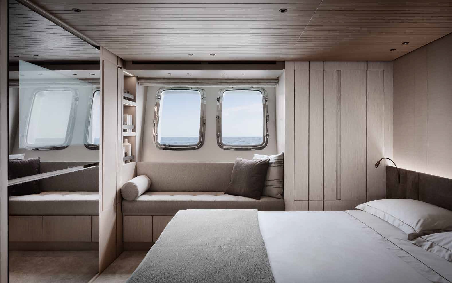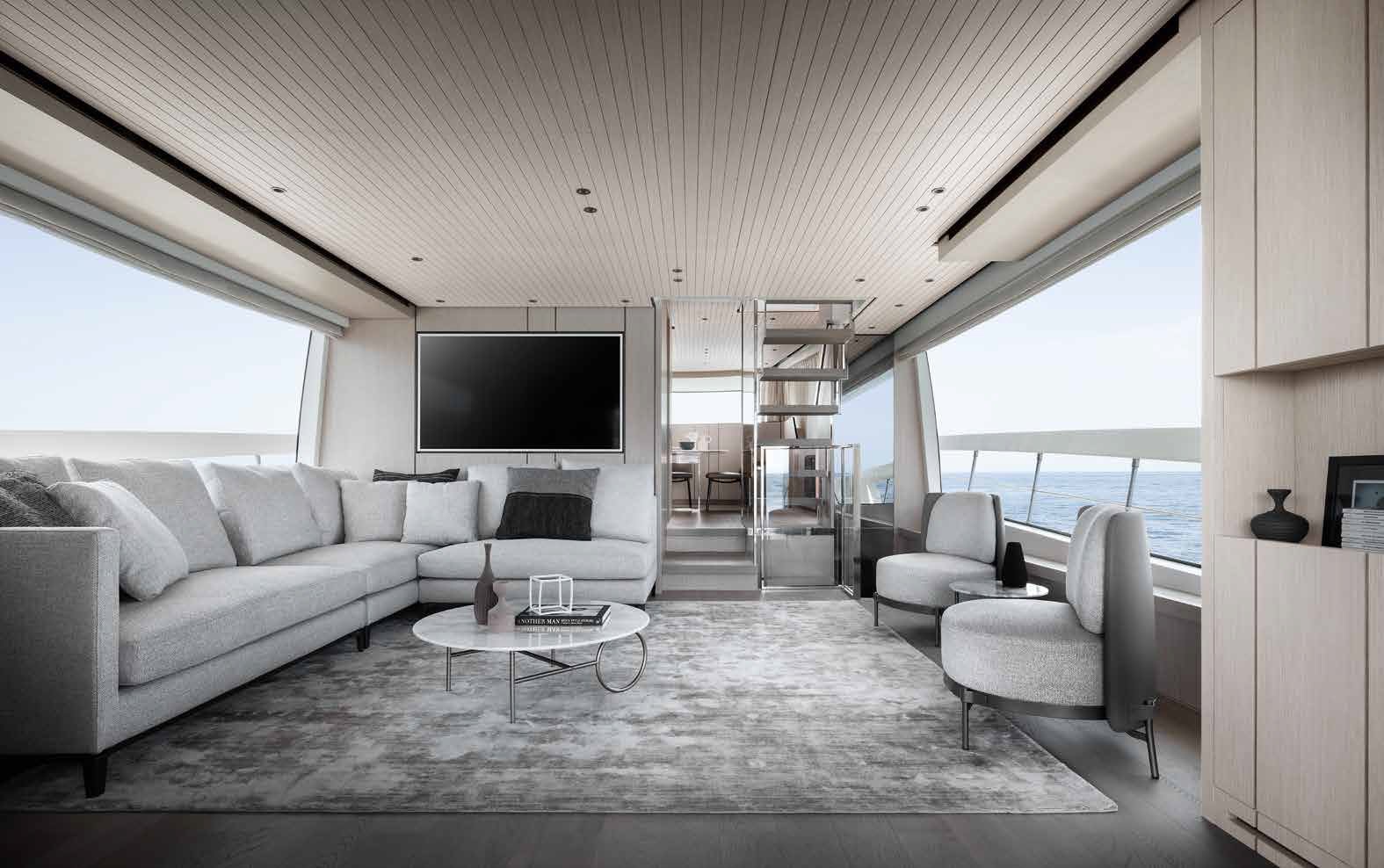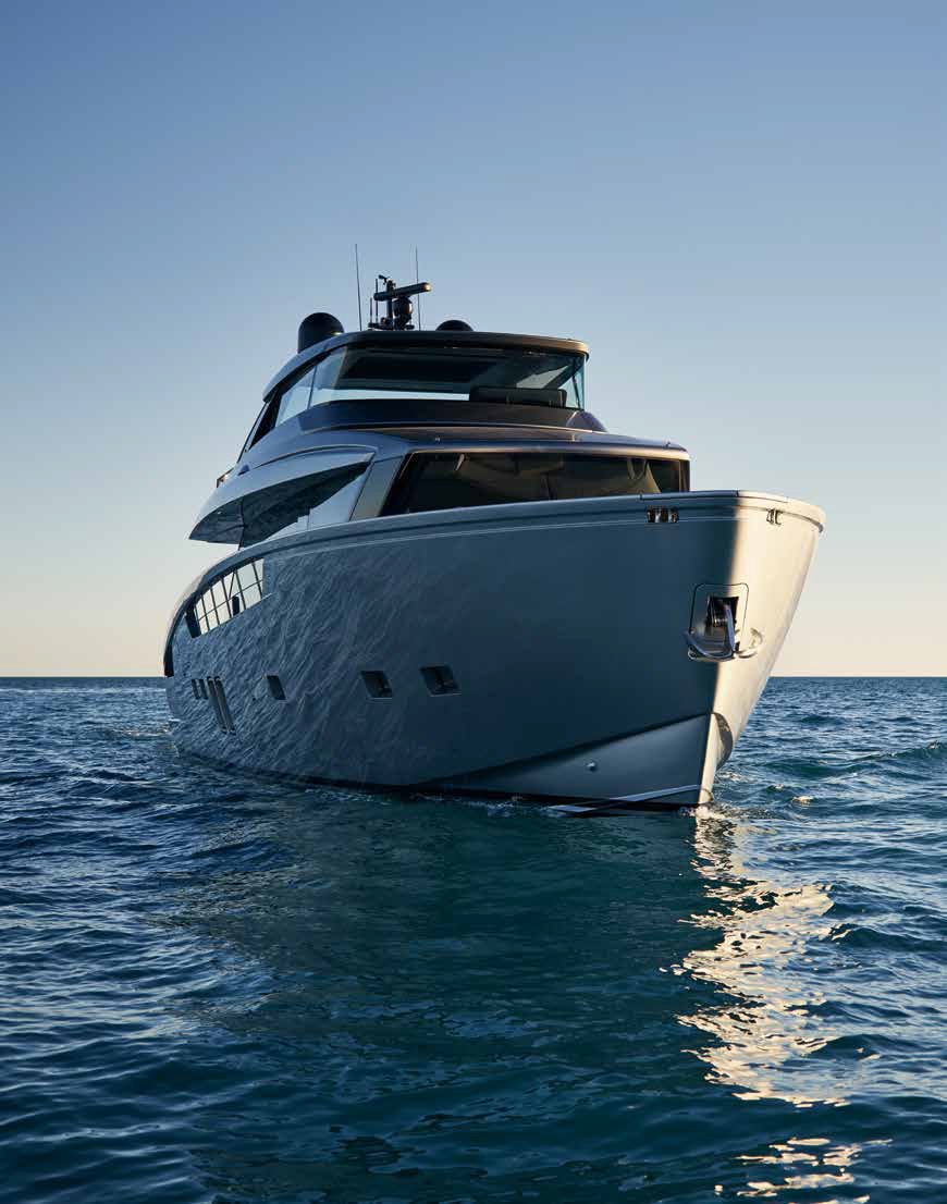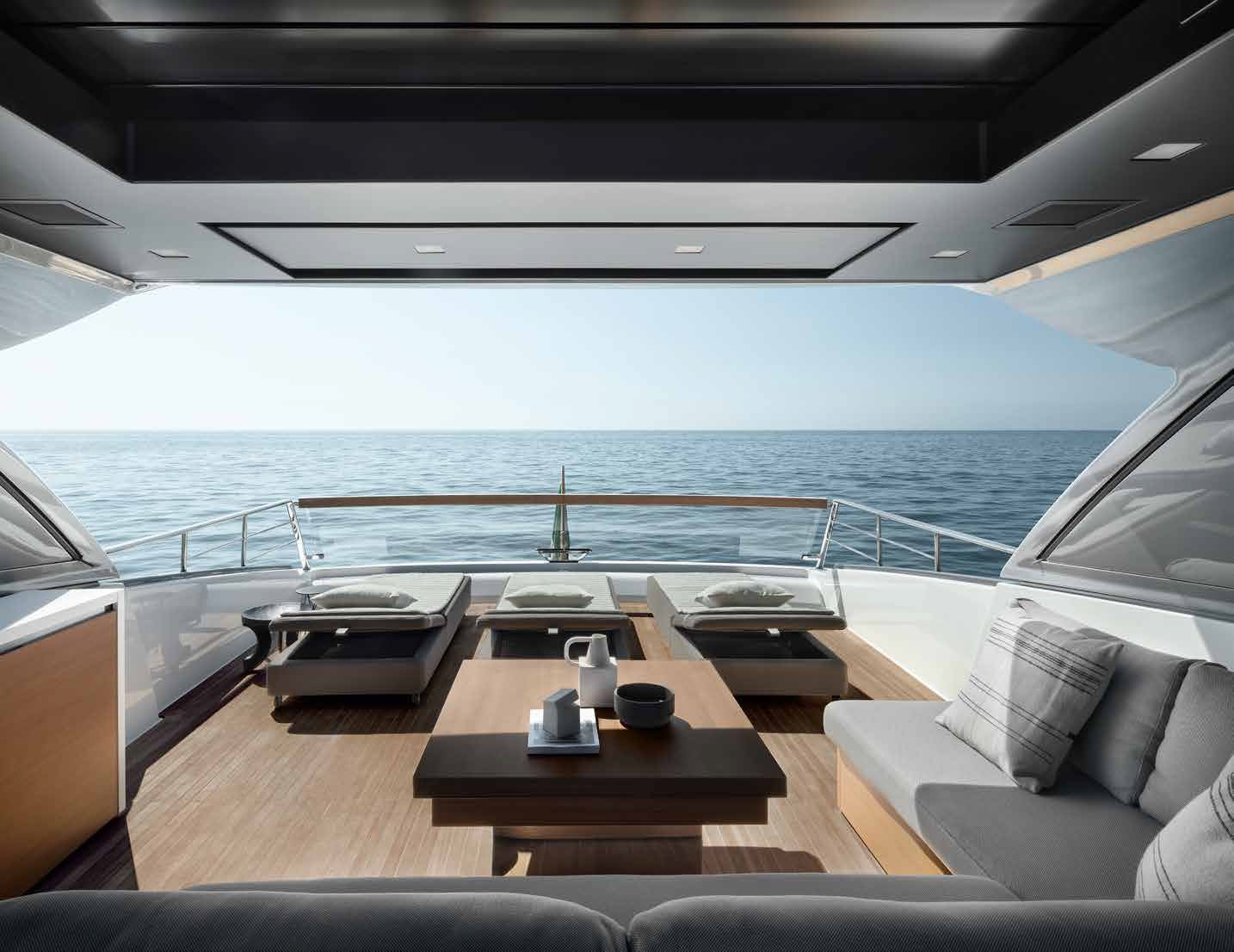 Inside, the SX76 showcases a meticulously crafted interior by renowned designer Piero Lissoni, offering a choice of luxurious materials and finishes to suit the owner’s personal style. The main deck is open and spacious, featuring a salon, dining area, and helm station. The lower deck accommodates up to eight guests in four well-appointed cabins, including a full-beam master suite, a VIP cabin, and two guest cabins, ensuring comfort and privacy for all onboard.