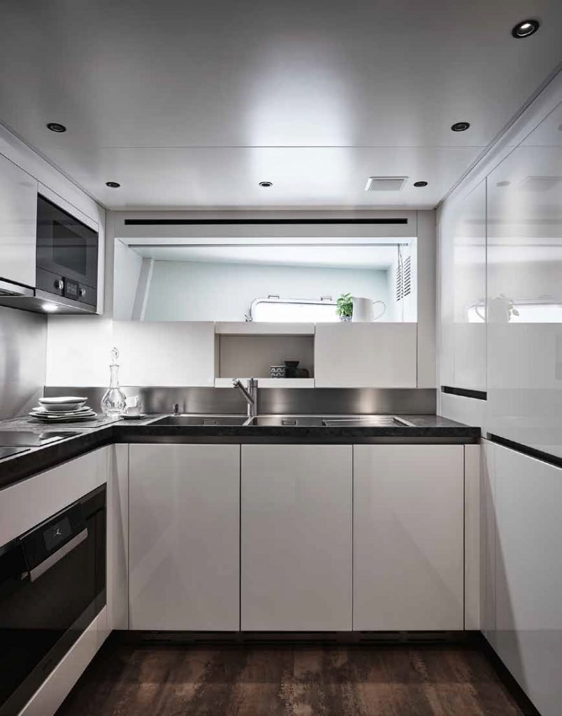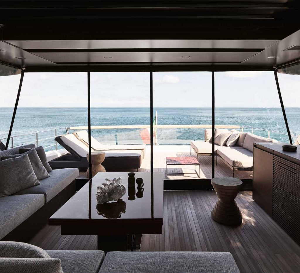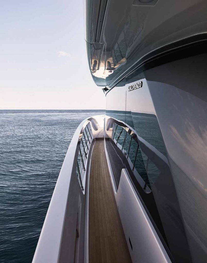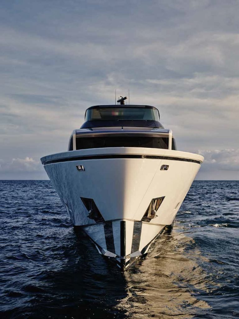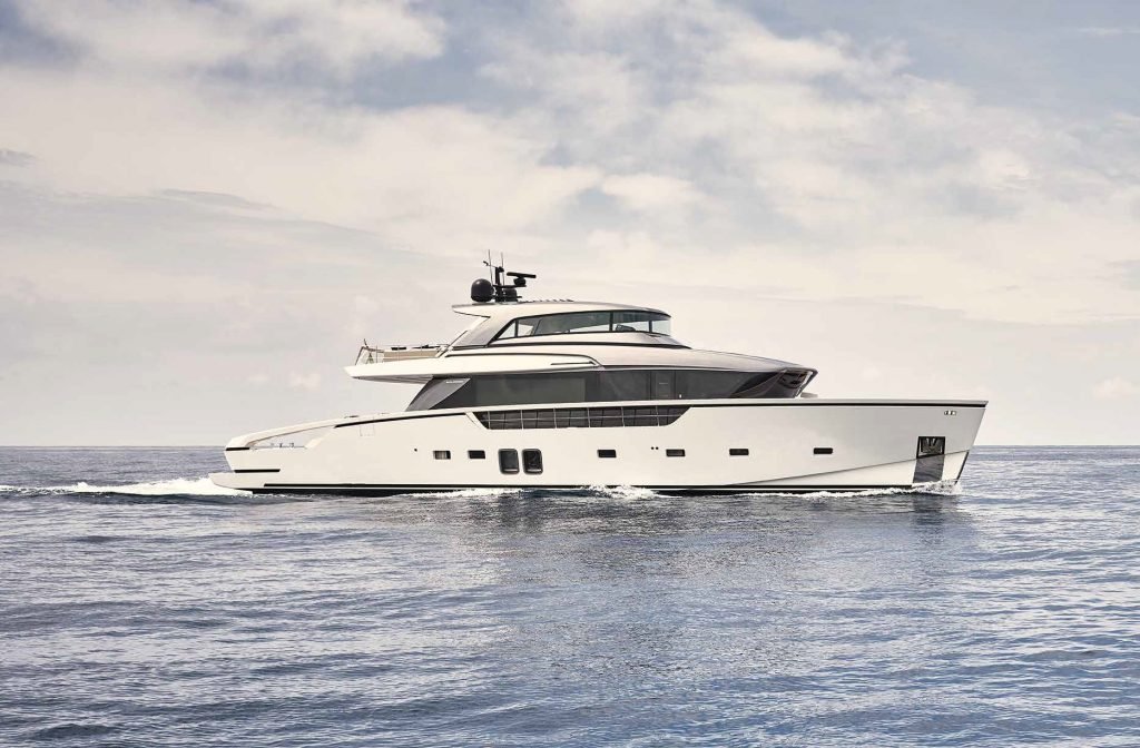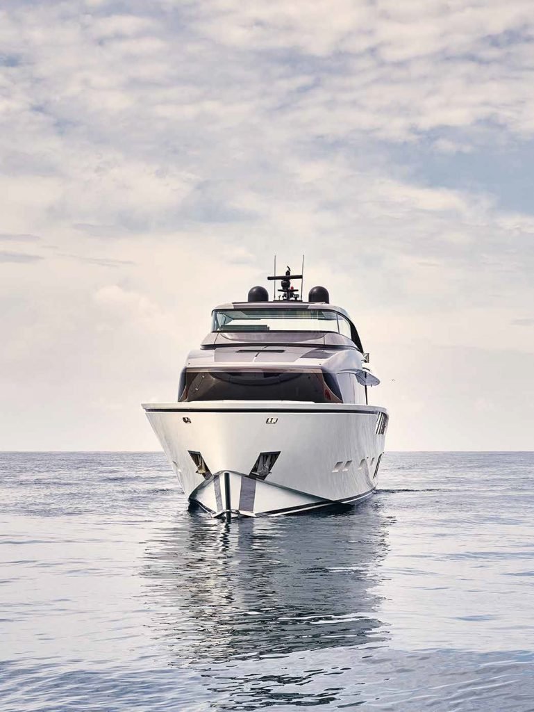 The Sanlorenzo SX88 is a groundbreaking luxury yacht that combines the best of both motor and explorer yachts, offering an unparalleled experience on the water. With a length of 26.7 meters, this yacht is designed for those who appreciate exceptional style and performance. The SX88’s profile is characterized by its sleek lines and large windows, which flood the interior with natural light and offer breathtaking views of the ocean. The main deck features an open-plan layout, seamlessly connecting the interior and exterior spaces, creating a harmonious living environment. The yacht is powered by Volvo Penta IPS 1200 engines, providing a cruising speed of 20 knots and a maximum speed of 23 knots, ensuring smooth and efficient voyages. With a fuel capacity of 9,300 liters, the SX88 offers an impressive range, making it perfect for extended cruising. The interior, designed by Piero Lissoni, exudes sophistication and comfort, with high-quality materials and meticulous attention to detail. The SX88 can accommodate 8 guests in four luxurious cabins, each with ensuite facilities, and is serviced by a crew of 3. The flybridge, a signature feature of Sanlorenzo yachts, offers a spacious area for relaxation and entertainment, equipped with sun loungers, a dining table, and a bar. The Sanlorenzo SX88 is not just a yacht; it’s a statement of elegance and innovation, perfect for those who seek adventure without compromising on luxury.