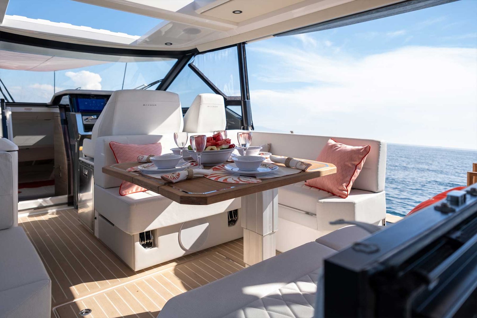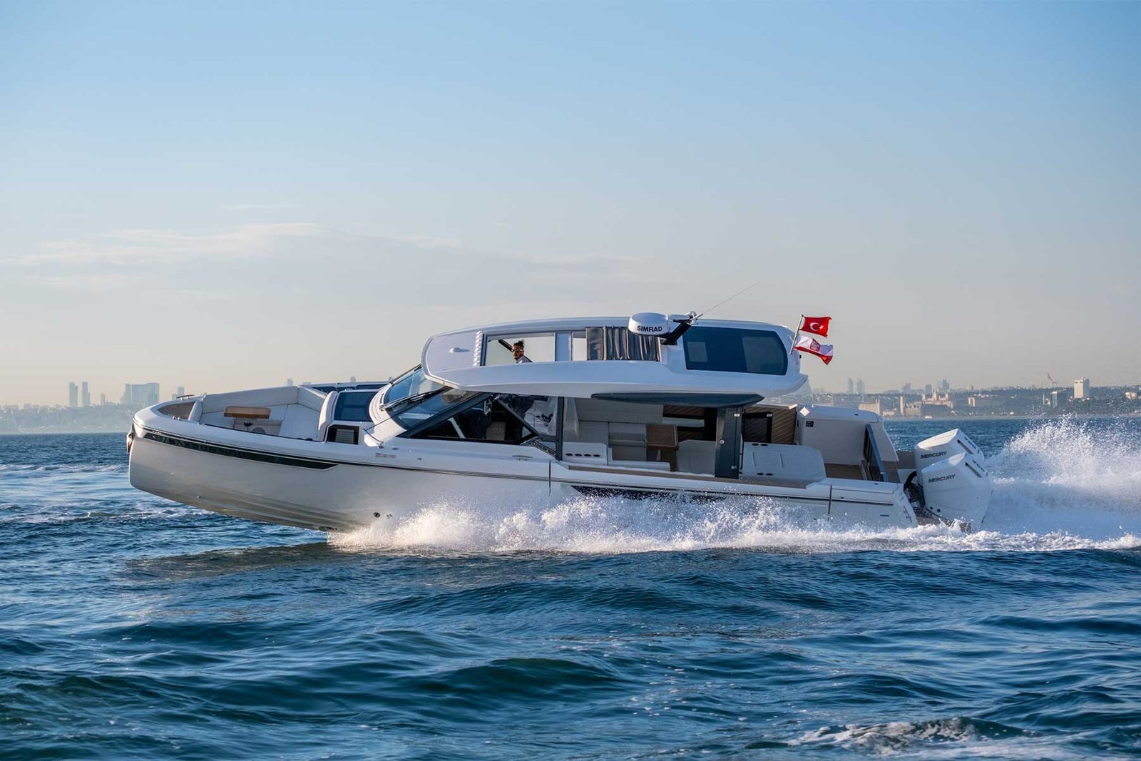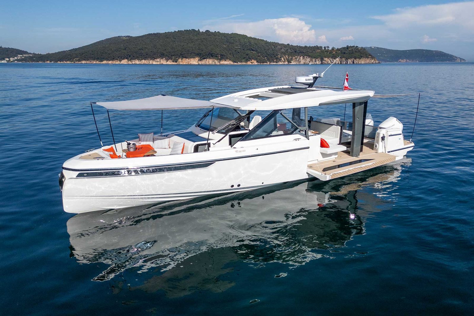 The Saxdor 400 GTO is a strikingly designed yacht that blends elegance with high performance, catering to those who seek a premium nautical experience. Measuring around 12 meters in length, this vessel offers a perfect blend of style and functionality. It is constructed with a GRP hull, ensuring durability and a smooth ride across various water conditions. The planning hull configuration allows for efficient and nimble navigation, making it a perfect choice for both leisurely cruises and thrilling adventures. Powered by twin inboard engines, the Saxdor 400 GTO delivers an exhilarating top speed, ensuring you reach your destination swiftly. Inside, the yacht is meticulously designed to offer comfort and luxury, with accommodations for up to eight guests and two well-appointed cabins. The interior is crafted with high-quality materials and finishes, reflecting the yacht’s premium status. The spacious deck layout provides ample space for socializing, sunbathing, and enjoying the breathtaking views. The Saxdor 400 GTO is not just about aesthetics; it offers impressive fuel efficiency and range, making it an ideal companion for extended voyages. Whether you are hosting a gathering on the open seas or enjoying a quiet escape, this yacht promises an unforgettable experience. Designed with both functionality and luxury in mind, the Saxdor 400 GTO stands out as a masterpiece of modern yacht engineering.