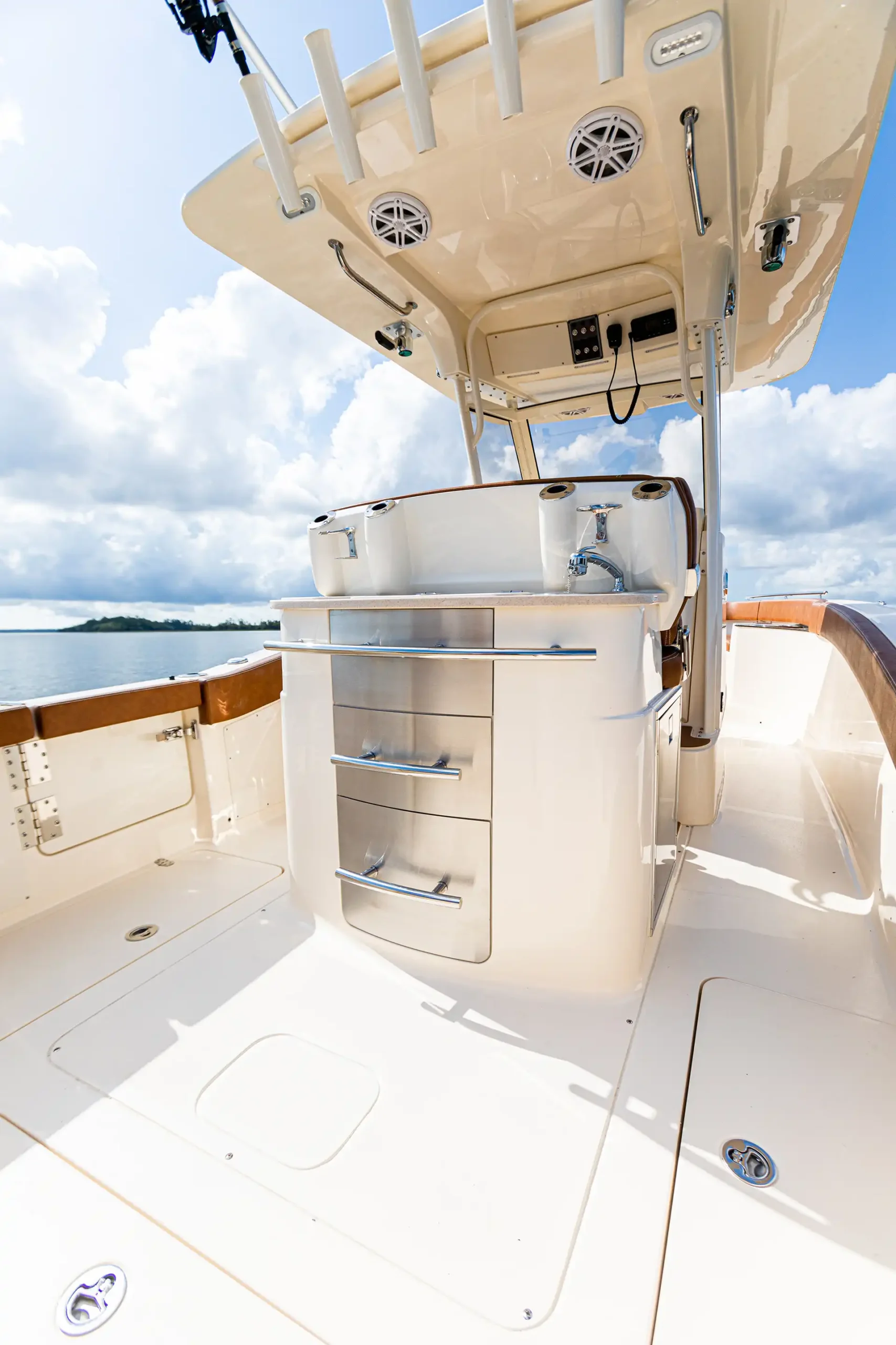 The Scout 277 LXF is a testament to Scout’s commitment to innovation and quality, offering a blend of luxury and high-performance capabilities. As a center console boat, it is perfect for both fishing enthusiasts and those seeking a leisurely day on the water. The 277 LXF features a sleek, modern design with a length of 8.46 meters (27.9 feet), making it a spacious and comfortable option for a day out at sea. Its beam of 2.74 meters (9 feet) provides ample stability and space for movement on deck. Engineered with a GRP hull, the boat is lightweight yet robust, ensuring durability and a smooth ride even in challenging conditions. The boat’s power comes from twin outboard engines, with the standard configuration being twin Yamaha F150s, delivering a cruising speed of 25 knots and a top speed of 35 knots. This performance makes the 277 LXF ideal for quick getaways and longer fishing trips alike. With a fuel capacity of 621 liters, it offers an impressive range to explore distant waters. Designed by Scout’s in-house team, the 277 LXF showcases meticulous attention to detail, from its ergonomic helm station to the luxurious finishes found throughout the boat. In addition to its performance and design, the 277 LXF offers practical features such as ample storage, comfortable seating for up to 10 guests, and a well-appointed cabin for overnight stays. Whether you’re navigating coastal waters or heading offshore, the Scout 277 LXF delivers an exceptional boating experience, combining style, comfort, and functionality.