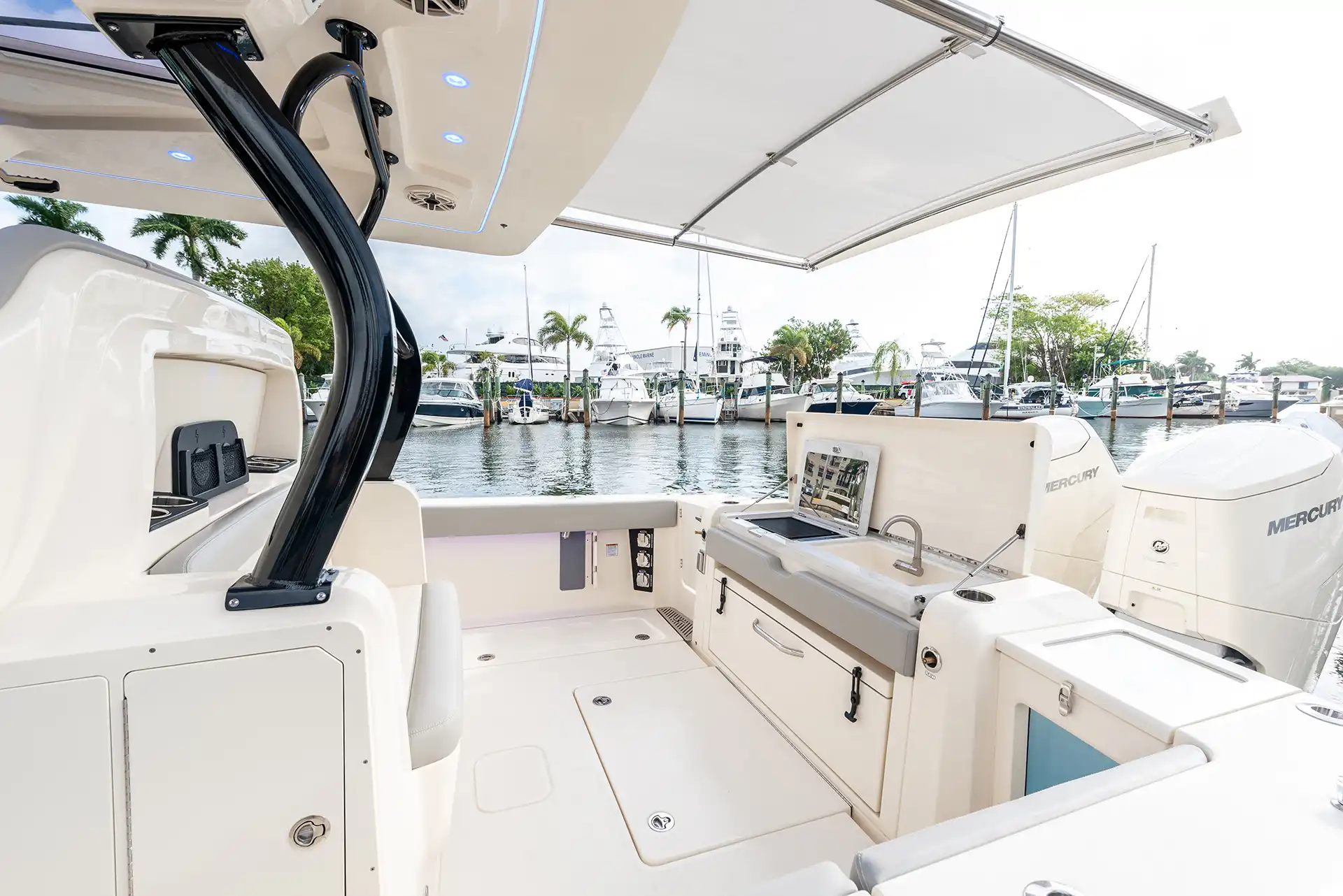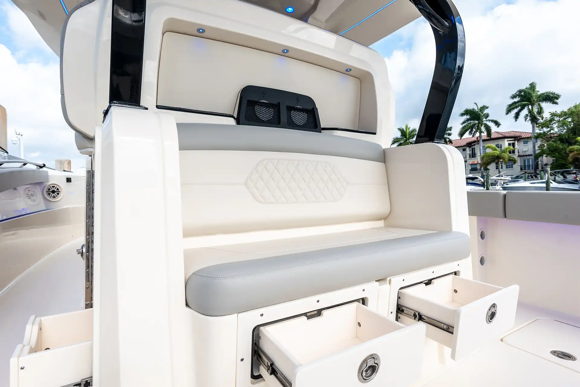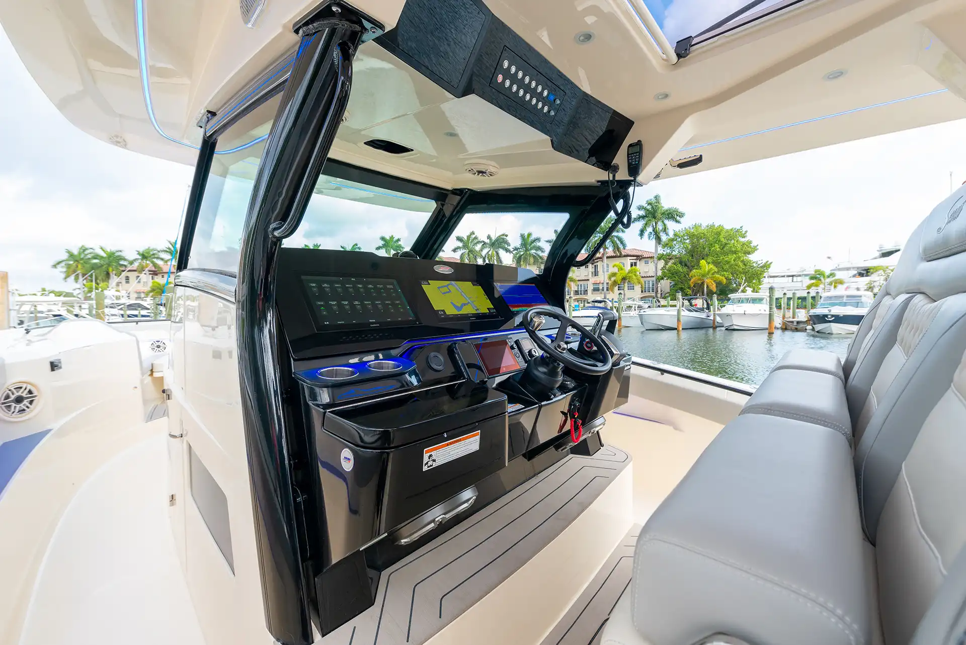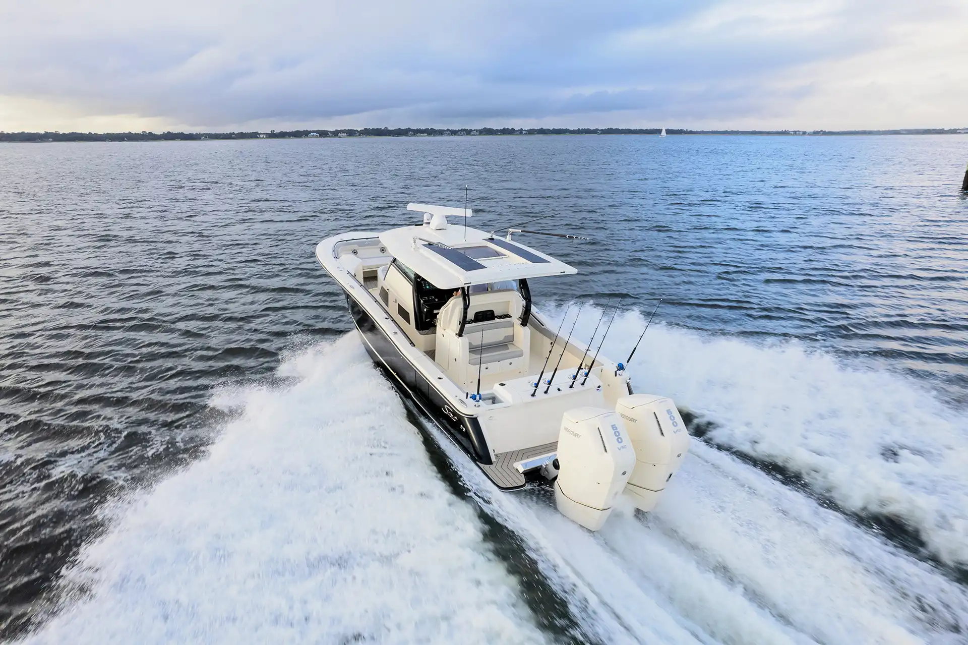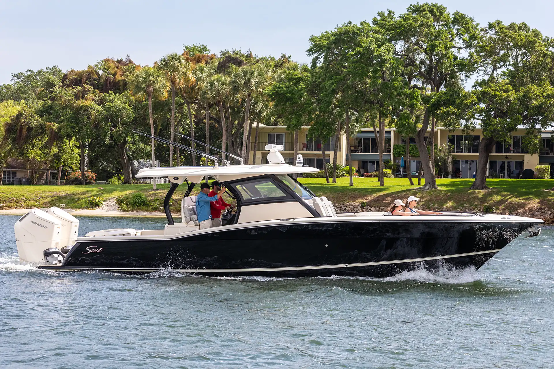 The Scout 377 LXF is a premium center console boat crafted with precision and designed to deliver an unrivaled experience on the water. This model is known for its sophisticated design and innovative features, making it a top choice for boating enthusiasts seeking both luxury and performance. Constructed with high-quality GRP, the hull design ensures stability and efficiency, while the sleek monohull configuration enhances speed and maneuverability. Powered by triple outboard engines, the 377 LXF offers impressive speed capabilities, effortlessly reaching a maximum speed of around 60 knots. A comfortable cruising speed of 30 knots ensures a smooth ride, whether you’re heading out for a day of fishing or a leisurely cruise along the coast. With a spacious layout, the 377 LXF can comfortably accommodate up to 12 guests during the day, making it perfect for entertaining family and friends or hosting a small gathering on the water. The advanced helm station is equipped with state-of-the-art navigation and control systems, providing the captain with everything needed for a seamless voyage. The interior boasts refined finishes and ample seating, ensuring that every guest enjoys their time aboard. The Scout 377 LXF is more than just a boat; it’s a statement of style and capability, embodying the Scout brand’s commitment to excellence and innovation in marine design.