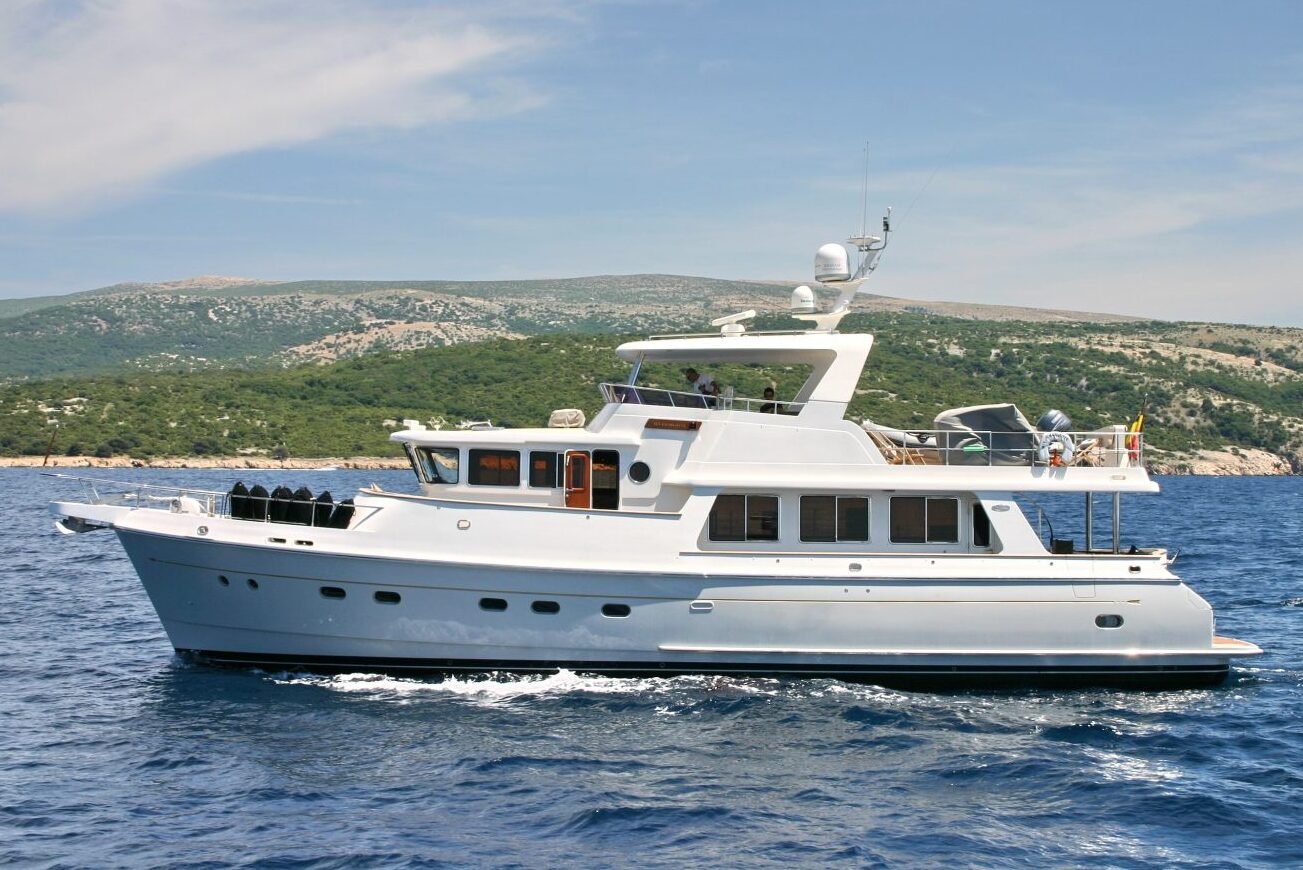 The Selene 66 is powered by twin Cummins QSM11 engines, offering a cruising speed of 9 knots and a maximum speed of 12 knots, with an impressive range of up to 2,000 nautical miles, making it perfect for extended voyages. The yacht can comfortably accommodate up to 8 guests in its 4 luxurious cabins, each designed with high-end finishes and attention to detail.