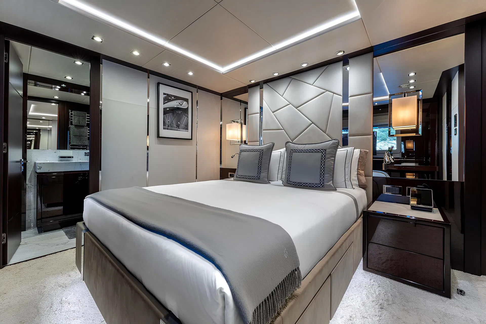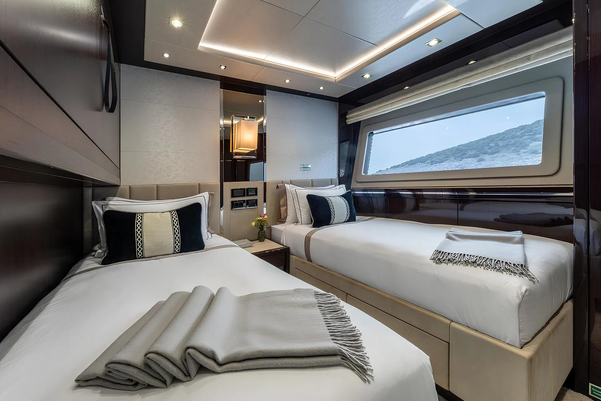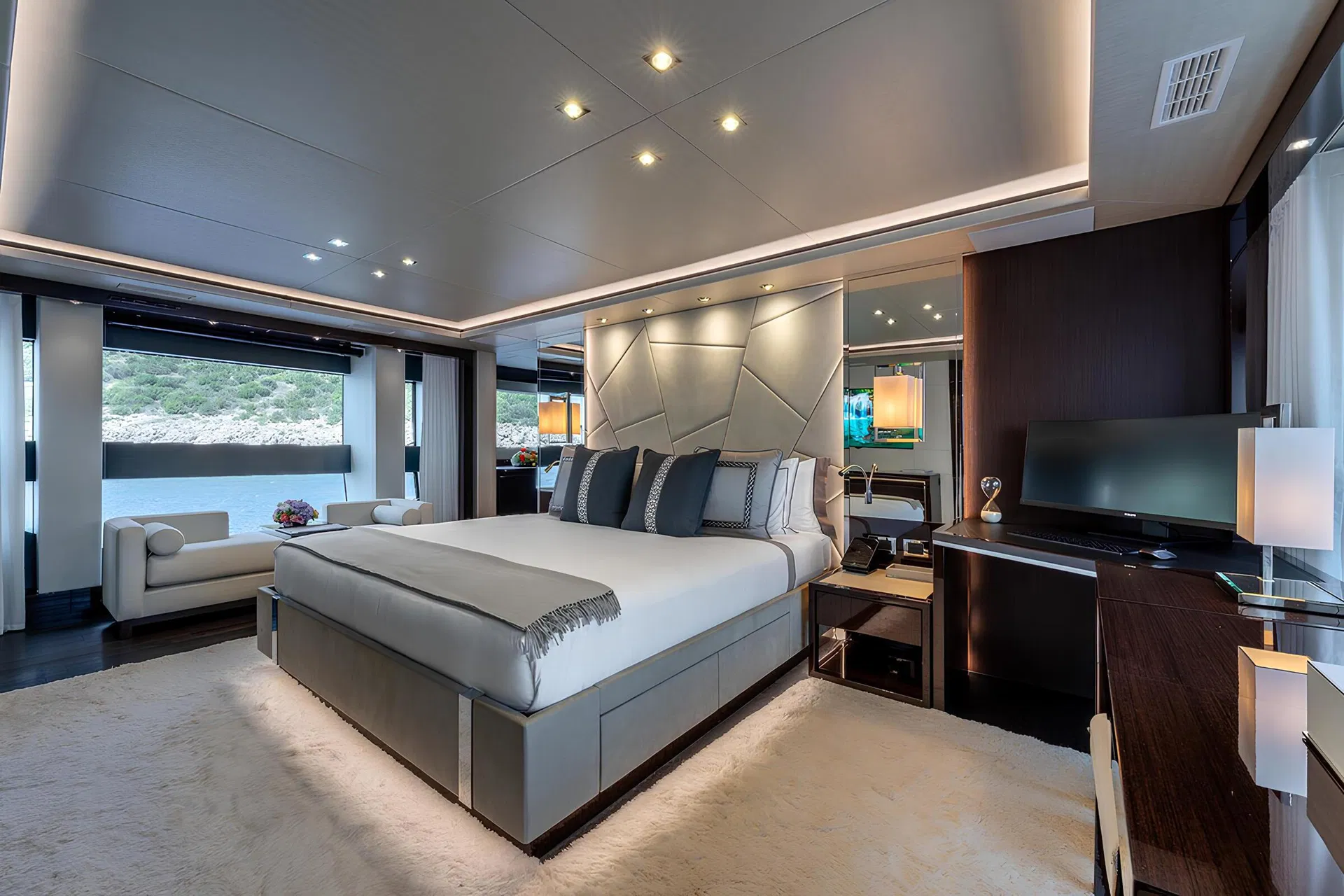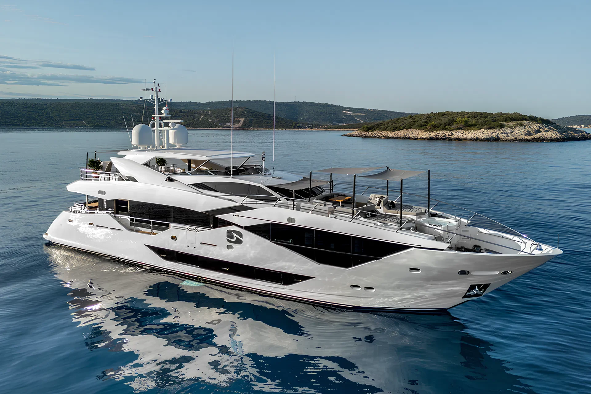 The Sunseeker 116 Yacht embodies the pinnacle of luxury yachting, seamlessly blending style, innovation, and performance. With an impressive length of 35.2 meters, this yacht offers a captivating allure with its sleek lines and contemporary design. The 116 Yacht is powered by twin MTU 16V 2000 M96L engines, delivering a cruising speed of 12 knots and a top speed of 26 knots, ensuring an exhilarating yet smooth ride across the seas. The spacious deck areas provide an ideal setting for relaxation and entertainment, featuring a generous flybridge, sunbathing areas, and al fresco dining spaces. The interior is equally opulent, boasting a sophisticated design by the Sunseeker in-house team, who have masterfully crafted a blend of sumptuous materials and cutting-edge technology to create a sanctuary of comfort and luxury. Accommodating up to 10 guests across five well-appointed cabins, including a lavish master suite, the yacht ensures a comfortable and private retreat for all aboard. The Sunseeker 116 Yacht also features a dedicated crew area for up to five members, ensuring top-tier service and seamless operations. Advanced navigation and communication systems are integrated throughout, guaranteeing a safe and enjoyable journey. With a range of 1,250 nautical miles, this yacht is perfect for long voyages and exploring distant shores. The Sunseeker 116 Yacht is not just a vessel, but a statement of elegance and a testament to the brand’s commitment to excellence in luxury yacht building.