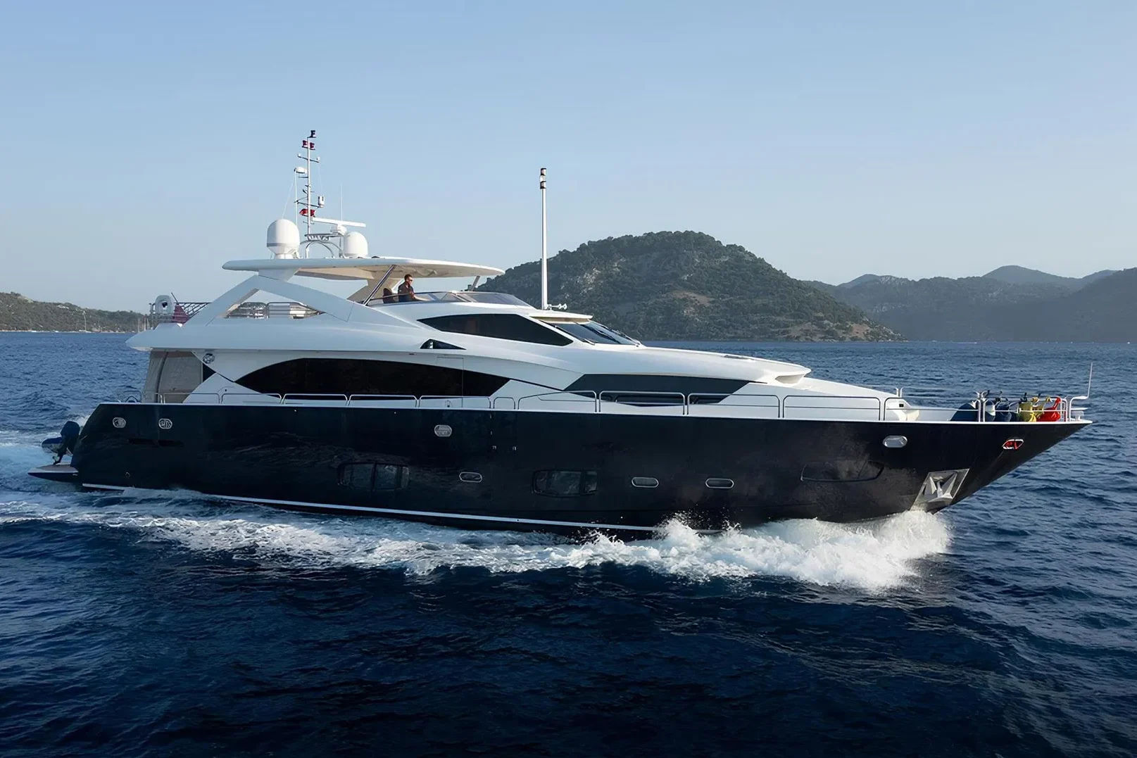 The Sunseeker 30M Yacht epitomizes luxury and performance, showcasing the pinnacle of British yacht design. Designed to cater to the most discerning yacht owners, this vessel combines advanced technology with exquisite craftsmanship. The yacht spans approximately 30 meters in length, offering ample space for both relaxation and entertainment. Its sleek, aerodynamic profile is not just aesthetically pleasing but also ensures optimal performance at sea. The interior is a testament to luxury, with bespoke furnishings and high-end finishes, ensuring a lavish experience on every voyage. With accommodation for up to 8 guests across 4 beautifully appointed cabins, the Sunseeker 30M Yacht promises comfort and privacy. The crew quarters are thoughtfully designed to provide efficient service without encroaching on the guest areas. Powering this maritime marvel are twin MTU engines, which provide a cruising speed of 22 knots and a maximum speed of 28 knots, ensuring a swift and smooth journey. The yacht’s planning hull configuration further enhances its performance, allowing for superior handling and stability. With a fuel capacity of approximately 9500 liters, the Sunseeker 30M offers an impressive range, making it ideal for extended cruises. Exterior spaces are equally impressive, featuring expansive decks with ample seating and sunbathing areas, perfect for enjoying the open ocean views. The Sunseeker 30M Yacht is not just a vessel; it is an experience of luxury, freedom, and performance, making it a true icon on the water.