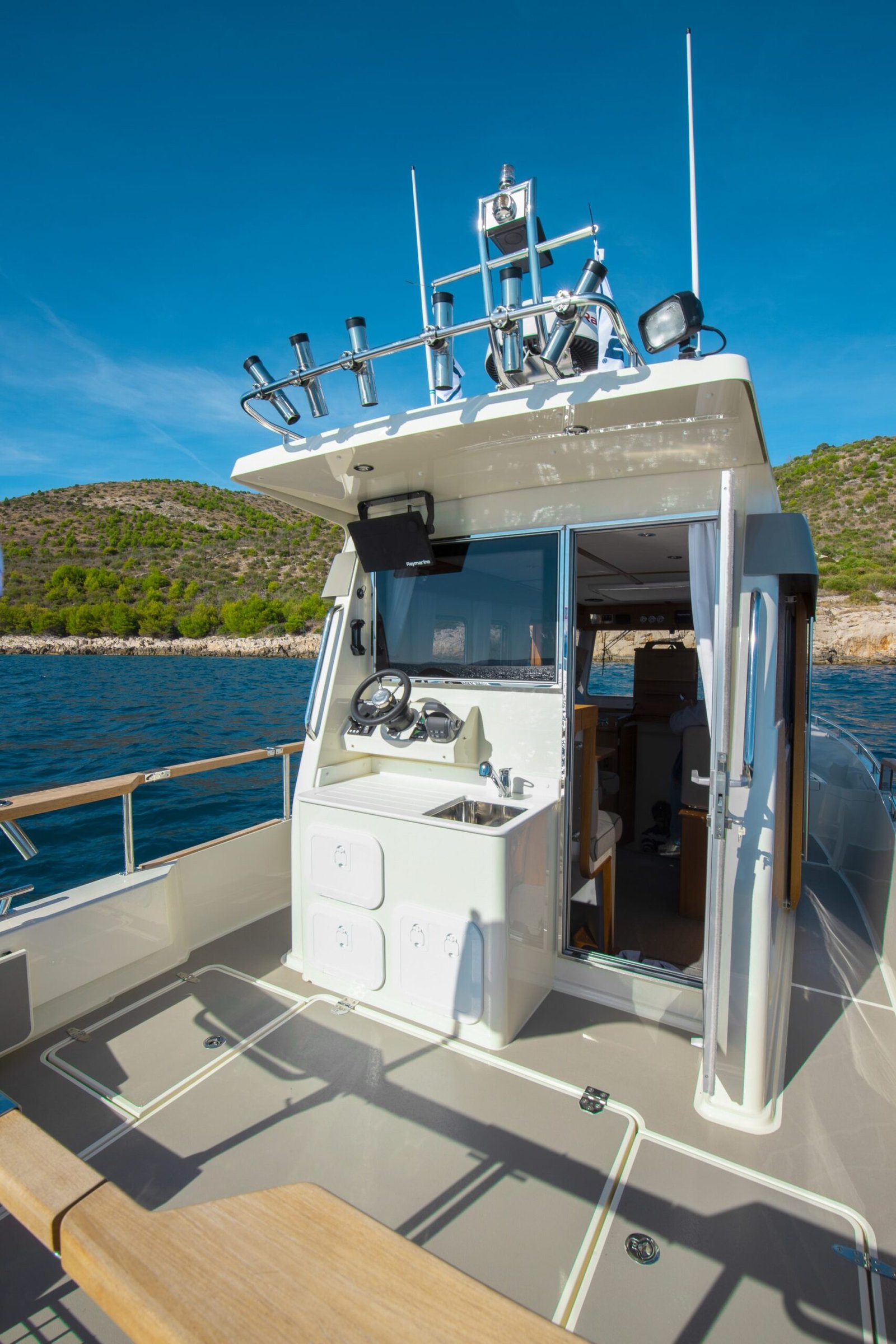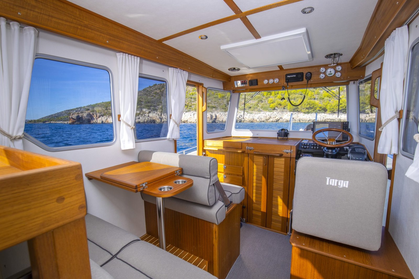 The Targa 27.2 TF is a remarkable motor yacht that combines sleek design with exceptional performance. Built by the renowned Targa shipyard, this vessel embodies the perfect blend of style and functionality. With an overall length of approximately 9,19 meters, the Targa 27.2 TF offers ample space for relaxation and enjoyment on the water. Its GRP hull is designed for planning, ensuring a smooth and efficient ride even in challenging conditions. The yacht can accommodate up to 8 day-guests comfortably, making it ideal for social gatherings or family outings. Inside, the Targa 27.2 TF features a well-appointed interior with one cabin, offering sleeping accommodations for up to 2 guests. The craftsmanship and attention to detail are evident throughout, with high-quality materials used in every aspect of the design. Powering this vessel is an inboard engine that delivers impressive cruising speeds and a top speed of up to 40 knots, allowing for swift and exhilarating journeys. The yacht’s fuel capacity ensures a generous range, making it suitable for extended voyages. Designed by Targa’s in-house team, the Targa 27.2 TF boasts a modern and stylish exterior, while the interior showcases thoughtful layouts that maximize comfort and usability. With its robust construction and versatile features, this yacht is equally at home navigating coastal waters or exploring remote destinations. Whether you’re seeking adventure or relaxation, the Targa 27.2 TF is a superb choice for discerning yachtsmen.