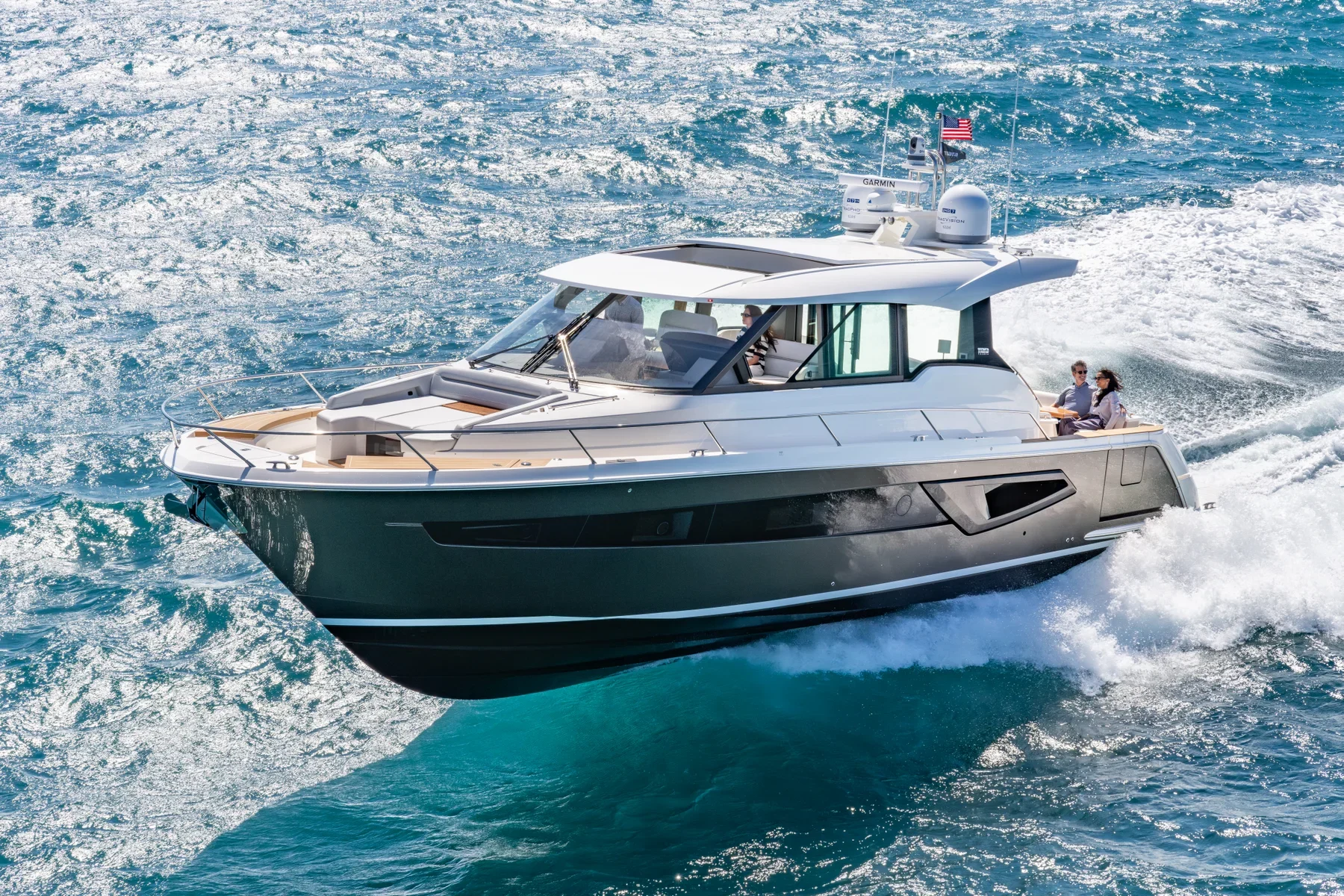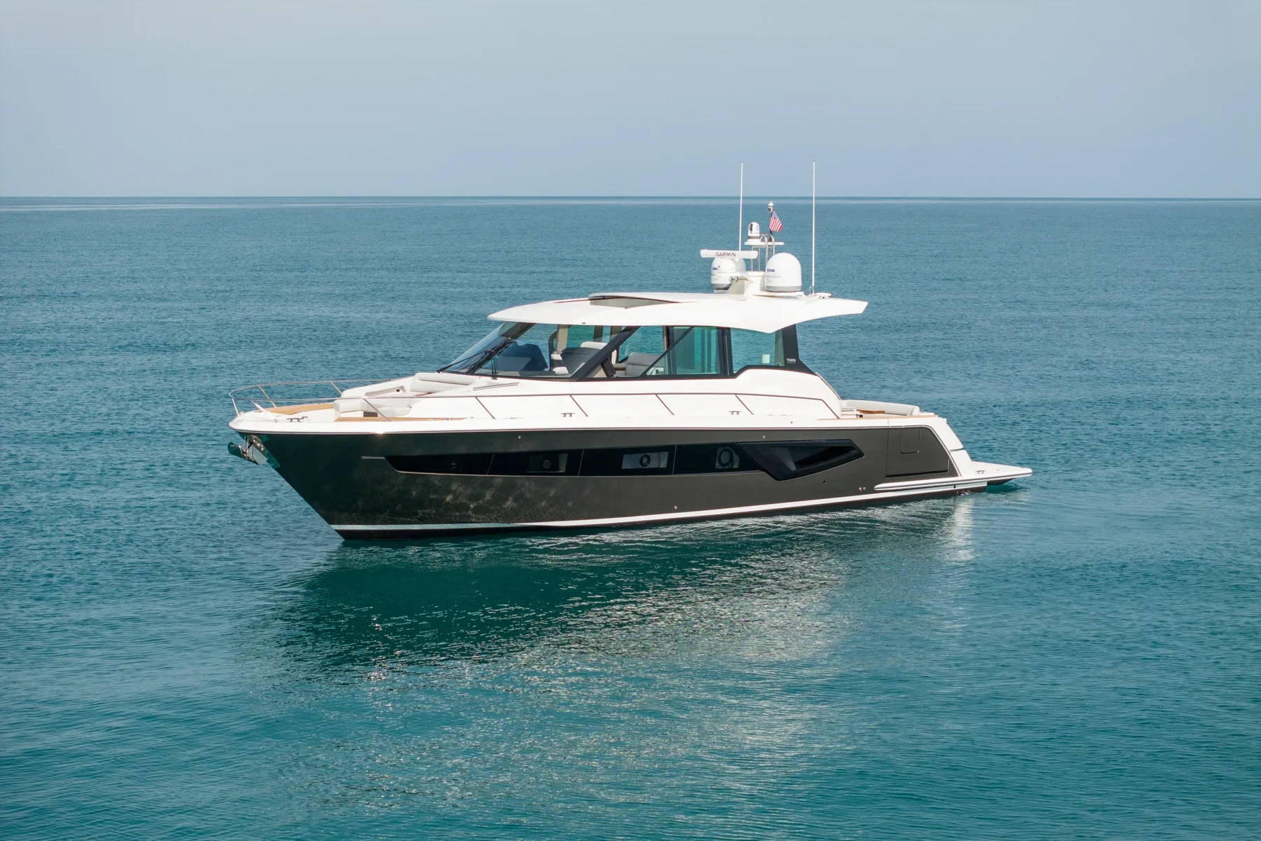 The Tiara EX 54 is a masterpiece of modern yachting, blending sophisticated design with robust engineering to create an unrivaled maritime experience. This luxury yacht, measuring approximately 16 meters, is constructed with a high-quality GRP hull that ensures durability and a smooth ride. The planning hull configuration enables the vessel to glide effortlessly over the water, offering both speed and stability. Powered by twin inboard engines, the Tiara EX 54 delivers impressive performance, capable of reaching speeds of up to 33 knots, with a comfortable cruising speed around 26 knots. The yacht’s fuel capacity supports extended voyages, allowing for a range of up to 300 nautical miles depending on speed and sea conditions. Inside, the Tiara EX 54 is a sanctuary of elegance and comfort. The spacious interior, designed by Tiara’s in-house design team, features two luxurious cabins that can accommodate up to eight guests for day trips and sleep four guests comfortably overnight. The open-plan salon is perfect for entertaining, equipped with state-of-the-art amenities and plush seating. Outside, the spacious deck areas offer ample room for relaxation and recreation, complete with a sunbathing area and al fresco dining options. With its exquisite craftsmanship and attention to detail, the Tiara EX 54 stands as a testament to Tiara’s commitment to luxury and innovation. This yacht is perfect for those who desire a seamless blend of performance, comfort, and timeless style, making every journey an unforgettable adventure.