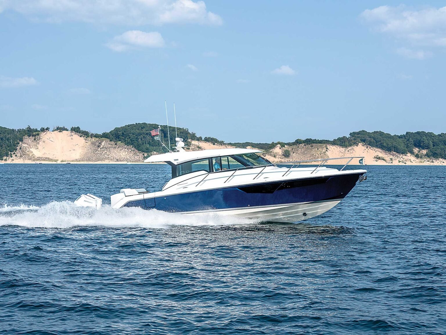 The Tiara 43 LE represents the epitome of luxury and design in the boating world, combining Tiara’s renowned craftsmanship with cutting-edge technology. This 13-meter vessel offers a spacious and thoughtfully designed layout that caters to both relaxation and high-performance cruising. With a beam of 4.37 meters and a draft of 1.09 meters, the 43 LE is designed to provide stability and comfort, even in choppy waters. The monohull design, constructed with premium GRP materials, ensures durability and a smooth ride, while the planning hull configuration optimizes performance. Powered by twin Mercury 600 engines, the 43 LE can reach a top speed of approximately 35 knots and a cruising speed of about 30 knots, offering an exhilarating yet efficient ride with an impressive range suitable for extended voyages. The interior of the Tiara 43 LE is a sanctuary of elegance, featuring two well-appointed cabins that accommodate up to four sleeping guests, making it ideal for weekend getaways or longer excursions. The main deck is designed for entertainment, with ample seating and a fully equipped galley. The Tiara Yachts in-house design team has meticulously crafted every detail, ensuring both functionality and style. With a capacity for up to 12 day guests, the Tiara 43 LE is perfect for social gatherings or family outings. As a standout in its class, this model is a testament to Tiara’s commitment to continuous innovation and quality, offering an unmatched yachting experience.