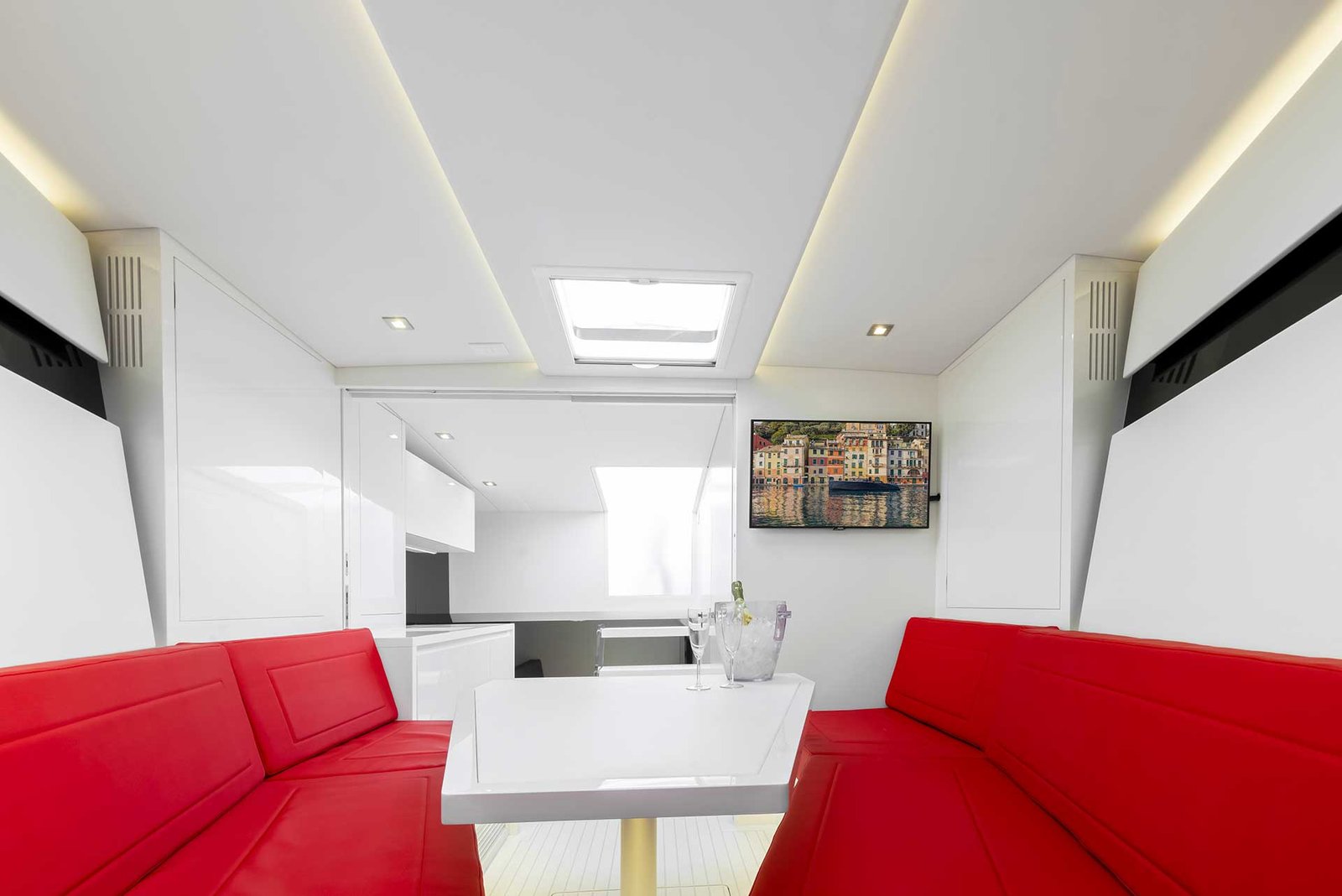 The Van Dutch 48 stands as a testament to innovation and elegance, offering a seamless blend of style and functionality. Crafted with precision, this yacht features a striking design that commands attention on the water. With a length of 14.61 meters, the Van Dutch 48 is constructed using high-quality GRP, ensuring durability and a smooth ride even in challenging conditions. The yacht’s planning hull configuration enhances its performance, allowing it to glide effortlessly over the waves. Powered by twin inboard engines, it reaches impressive speeds, with a maximum speed of 36 knots and a cruising speed of 30 knots, making it perfect for both leisurely cruises and exhilarating adventures. Inside, the Van Dutch 48 offers a refined interior designed by acclaimed designers with an emphasis on luxury and comfort. The spacious layout accommodates up to 14 guests during the day and provides sleeping arrangements for up to two guests in its one well-appointed cabin, making it ideal for overnight stays. The open deck design is perfect for social gatherings, offering plenty of space for relaxation and entertainment. Manufactured in Italy, the Van Dutch 48 boasts a range of up to 300 nautical miles, allowing for extended journeys without frequent refueling. With a fuel capacity of 1500 liters, it promises both efficiency and performance. The yacht’s sophisticated engineering ensures a smooth and enjoyable experience for all aboard. Whether you’re hosting a sunset cocktail party or embarking on a weekend getaway, the Van Dutch 48 delivers an unparalleled yachting experience.