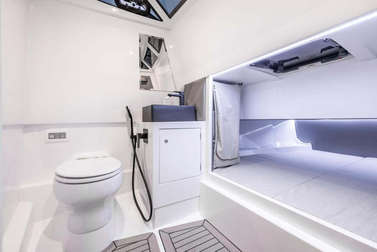 The Vanquish VQ40 is a masterpiece in modern yacht design, combining luxury, performance, and innovative engineering into one seamless package. Crafted with a focus on speed and style, this open yacht features a streamlined GRP hull that cuts through the water with ease, offering an exhilarating experience for all on board. Measuring approximately 12m in length, the VQ40 provides ample space for relaxation and entertainment. Its open deck layout is perfect for social gatherings, allowing guests to enjoy the sun and sea breeze in comfort. Equipped with powerful inboard engines, the VQ40 boasts impressive cruising and maximum speeds, ensuring swift and smooth passage across the waves. The interior, designed with luxury in mind, features high-quality finishes and state-of-the-art amenities, providing a haven of tranquility amidst the ocean’s expanse. With accommodation for up to 8 day guests and sleeping arrangements for 2 in a well-appointed cabin, the VQ40 ensures a comfortable journey for both short trips and extended voyages. The yacht is a testament to Vanquish’s commitment to excellence, with naval architecture and engineering handled by their expert in-house team. Whether navigating coastal waters or open seas, the Vanquish VQ40 delivers an unforgettable yachting experience, making it an ideal choice for those who demand nothing but the best.