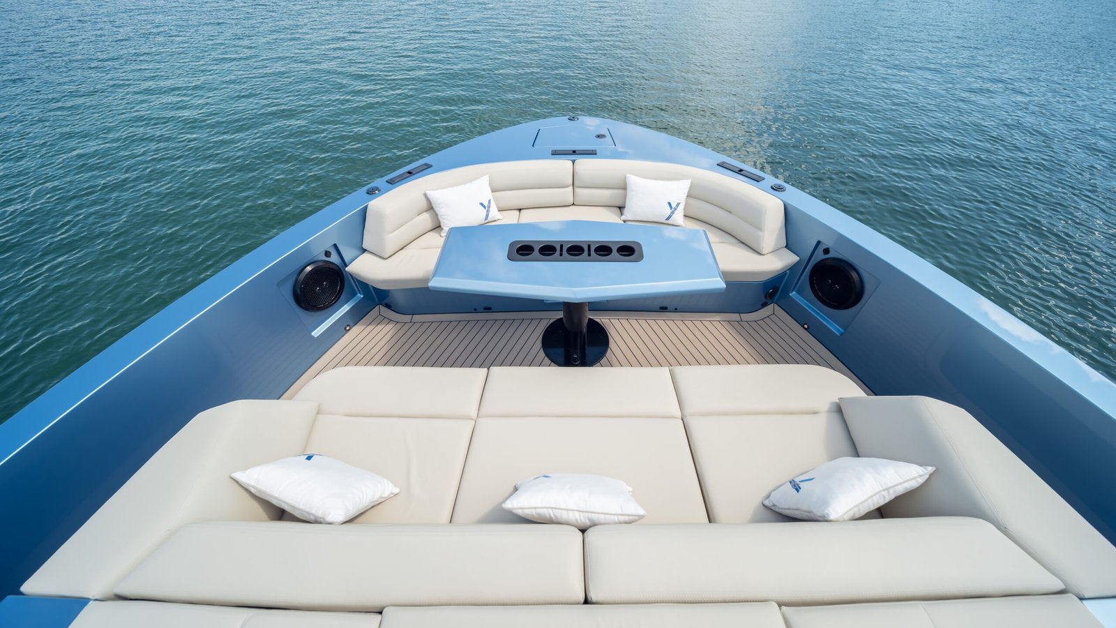 The Vanquish VQ58 T-Top is a remarkable example of modern yacht design, embodying both luxury and performance. With its sleek, aerodynamic lines and robust build, this yacht is engineered for those who appreciate high-speed cruising and stylish comfort. Measuring approximately 17.25 meters in length, the VQ58 T-Top offers ample space and amenities for entertaining or relaxing. The exterior, designed by Guido de Groot, showcases a distinctive profile that combines elegance with a sporty edge. Inside, the yacht features a luxurious interior crafted by the Vanquish in-house design team, providing a sophisticated yet comfortable environment. Two spacious cabins accommodate up to four sleeping guests, while the expansive deck areas can host up to eight day guests, ensuring ample room for socializing and leisure. The yacht is powered by twin Volvo Penta engines, delivering impressive speeds of up to 45 knots, with a comfortable cruising speed of 32 knots. The hull is constructed from high-quality GRP, providing a lightweight yet durable platform for exhilarating performance on the water. With a fuel capacity of 1,595 liters, the VQ58 T-Top offers a substantial range, making it ideal for both short trips and longer excursions. This yacht is the perfect choice for discerning owners who value both style and substance, offering a unique blend of luxury, speed, and practicality.