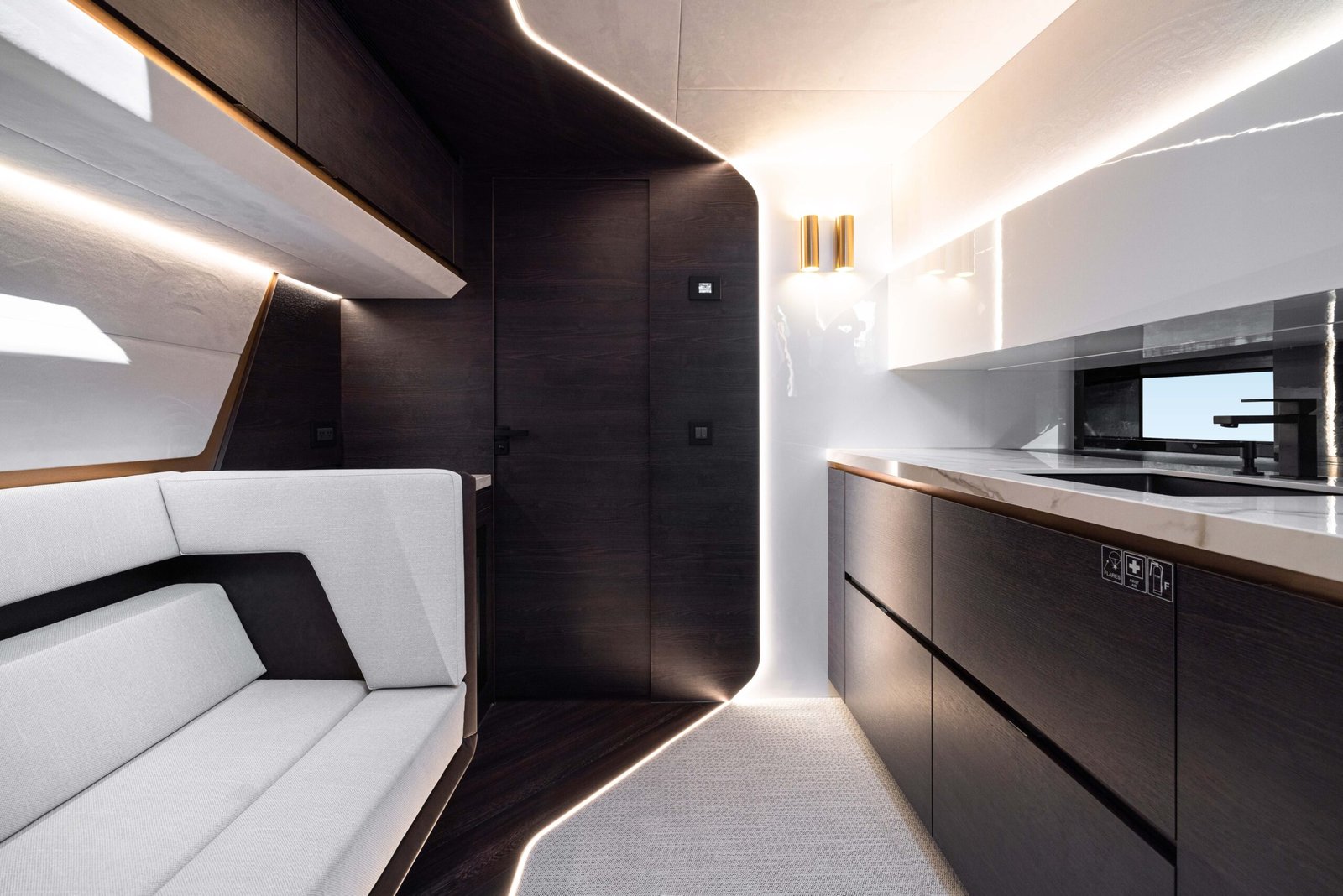 The Vanquish VQ70 is the epitome of modern yachting, offering an unparalleled blend of luxury, innovation, and performance. Measuring 22 meters in length, this open yacht is crafted with precision using high-quality GRP materials, ensuring both durability and a sleek finish. Designed for those who appreciate the finer things in life, the VQ70 features a dynamic exterior designed by Guido de Groot, known for his ability to seamlessly integrate form and function. The yacht’s interior, also crafted by de Groot, exudes sophistication, offering a spacious environment that comfortably accommodates up to eight day guests and provides sleeping quarters for four in two beautifully appointed cabins. With a maximum speed of 48 knots and a cruising speed of 36 knots, the Vanquish VQ70 is powered by state-of-the-art inboard engines, delivering an exhilarating yet comfortable ride. The yacht’s planning hull configuration ensures a smooth journey, even at high speeds. With a fuel capacity of 6,500 liters, the VQ70 offers an impressive range, making it ideal for extended trips along the coastline or swift island hopping adventures. Expertly engineered by the in-house Vanquish team, this yacht embodies the brand’s commitment to cutting-edge technology and superior craftsmanship. Priced at approximately 3,500,000 euros new, the VQ70 represents a significant investment for those desiring an exceptional yachting experience. Pre-owned models are available from 2,800,000 to 3,200,000 euros, offering a cost-effective entry into the world of luxury yachting. Based in Italy, Vanquish is renowned for producing yachts that push the boundaries of design and performance, and the VQ70 is no exception.