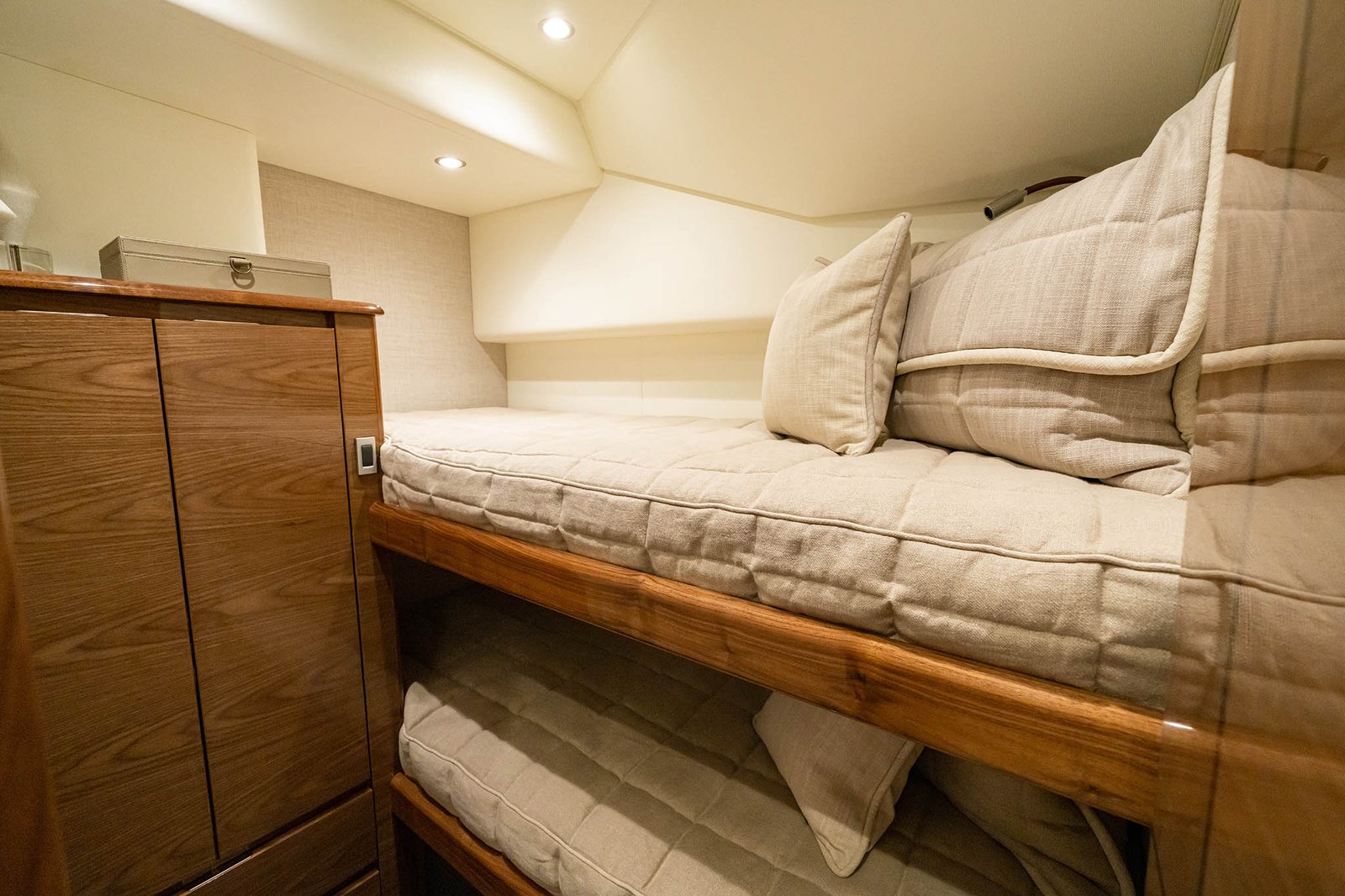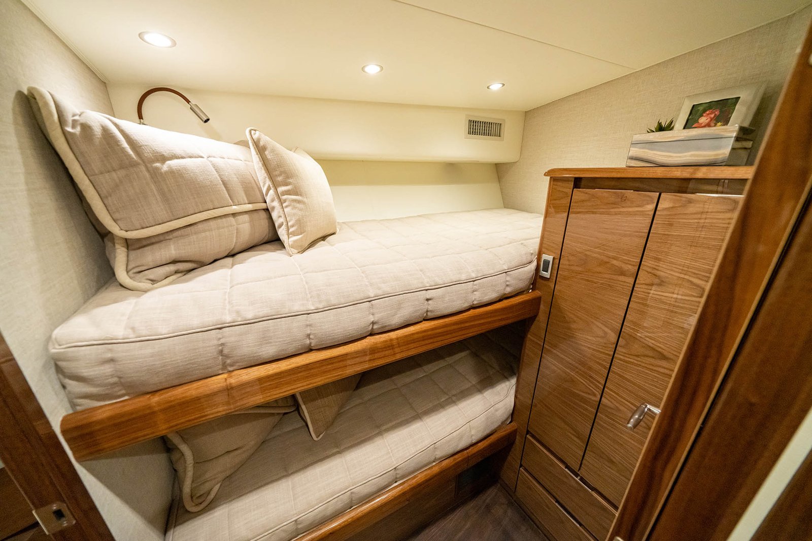 The Viking 54 Sport Tower is a state-of-the-art sportfish yacht that embodies the perfect blend of luxury, performance, and craftsmanship. Designed for serious anglers and those seeking the thrill of the open sea, the 54 ST boasts a sleek profile with a robust GRP hull, ensuring both durability and agility. With a length of 16.61 meters and a beam of 5.38 meters, this vessel offers ample space on deck and in the living quarters. The thoughtfully designed interior features two luxurious cabins, providing sleeping accommodations for up to four guests, while the spacious salon and galley offer all the comforts of home. The yacht is powered by twin MAN V12 engines, delivering impressive performance with a cruising speed of 30 knots and a maximum speed of 40 knots. The Viking 54 Sport Tower is engineered for long-range cruising, with a fuel capacity of 5,625 liters, allowing adventurers to explore further without compromising on comfort or style. The exterior and interior design are handled by Viking’s in-house team, renowned for their attention to detail and innovative use of space. The 54 ST is equipped with advanced navigation and fishing equipment, making it a formidable contender in any fishing tournament. Whether you’re chasing big game or enjoying a leisurely cruise, the Viking 54 ST promises an unforgettable experience on the water. The new price starts at approximately 2,800,000 euros, with used models ranging from 1,800,000 to 2,200,000 euros.