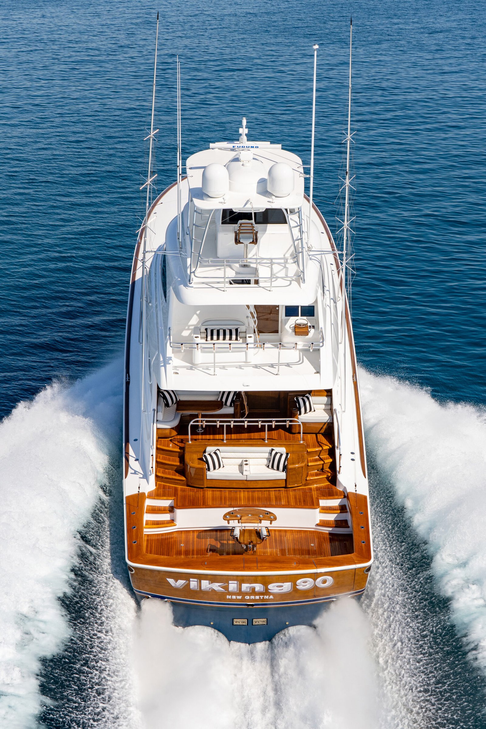 The Viking 90 Enclosed Bridge represents the pinnacle of luxury sportfishing yachts, combining the brand’s exceptional craftsmanship with cutting-edge technology. This magnificent vessel stretches approximately 27 meters, providing ample space for both leisure and sportfishing enthusiasts. Constructed with a planning hull made from high-quality GRP, the yacht is designed for superior performance and stability at sea. The Viking 90 EB is powered by twin inboard engines, offering a perfect blend of power and efficiency, ensuring a smooth and exhilarating ride. With a cruising speed of 30 knots and a maximum speed of 37 knots, this vessel stands out for its speed and agility.