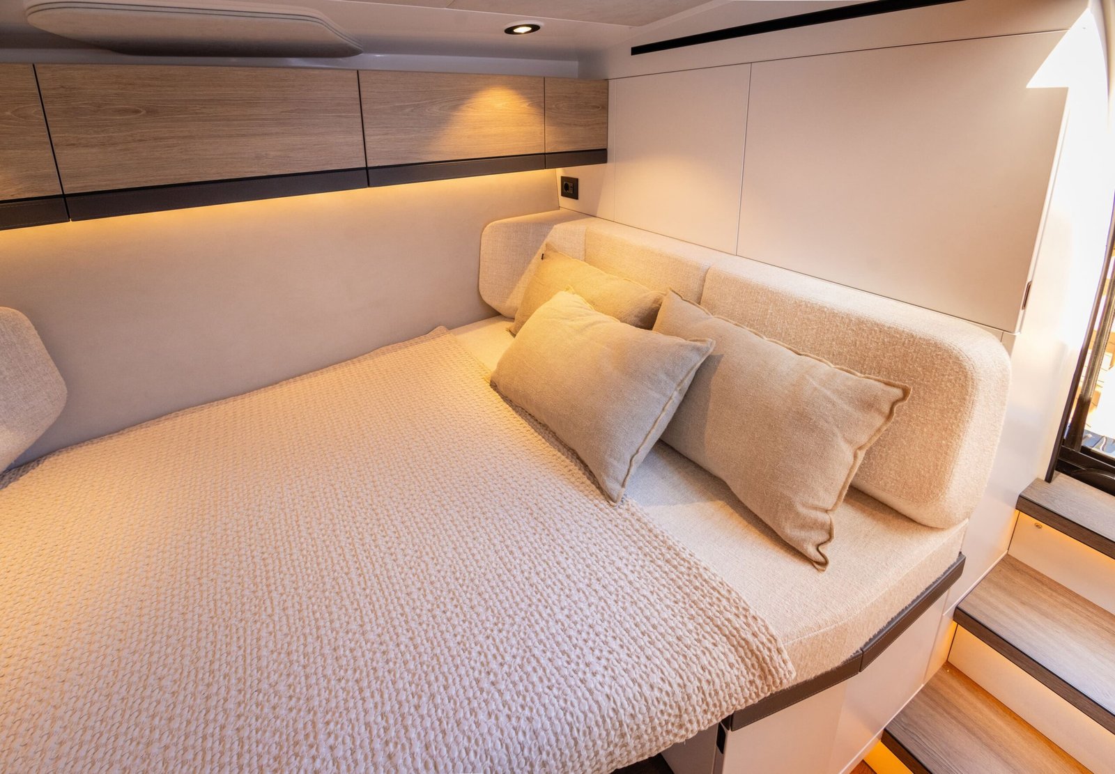 The Wajer 44 is a stunning blend of cutting-edge technology, superior craftsmanship, and luxurious comfort, marking it as a standout in the world of leisure boating. Built by the renowned Dutch shipyard Wajer, the 13 meters yacht is designed for those who appreciate elegance and performance. Its sleek and aerodynamic profile is not just for show; it significantly enhances the yacht’s speed and efficiency, making it a joy to navigate through the waters. The yacht’s hull is constructed using high-quality GRP material, ensuring durability and a lightweight structure that contributes to its planning hull configuration. This model is powered by robust inboard engines, offering a cruising speed of 25 knots and a maximum speed of 38 knots, ideal for thrilling excursions or leisurely cruises. The interior of the Wajer 44 is a testament to luxurious design, featuring one cabin that accommodates up to 2 guests overnight. The spacious deck layout is perfect for entertaining, with room for up to 16 day guests. The yacht is equipped with state-of-the-art navigation and entertainment systems, ensuring both safety and enjoyment. The craftsmanship is evident throughout, with exquisite finishes and attention to detail that Wajer is known for. With a new price point starting at approximately 1,250,000 EUR, the Wajer 44 provides excellent value in the luxury yacht market. Its used market prices range from 900,000 to 1,150,000 EUR, reflecting its enduring appeal and quality. Whether for family outings or hosting friends, the Wajer 44 promises an exceptional experience on the water.